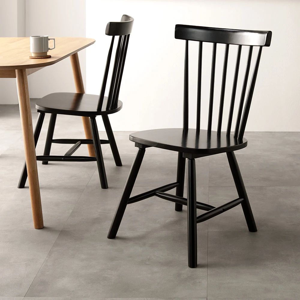 曲線の背もたれが包み込む、天然木の温もりを愉しむ北欧ダイニング ブラック チェア 2脚セット