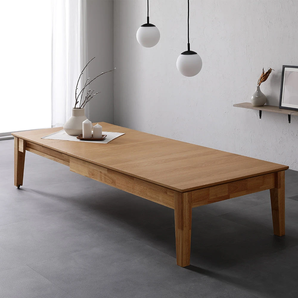 来客時は広げて日常はすっきり使える伸長ダイニング 高さ37cm オークナチュラル