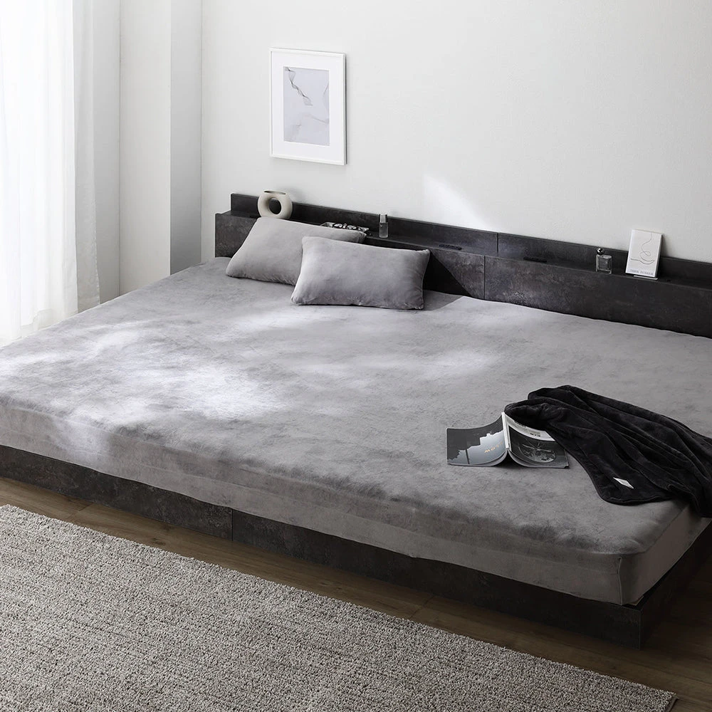 なめらかでもっちり包み込み、丸洗いで清潔が続く暖かベロア寝具 クイーン~キング ボックスシーツ単品 チャコールグレー