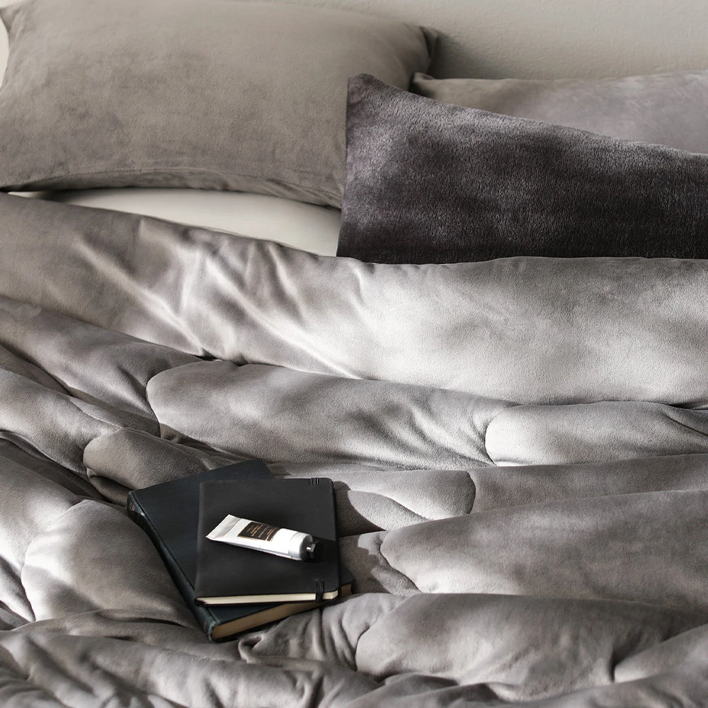 なめらかでもっちり包み込み、丸洗いで清潔が続く暖かベロア寝具 Default Title 枕カバー単品 チャコールグレー
