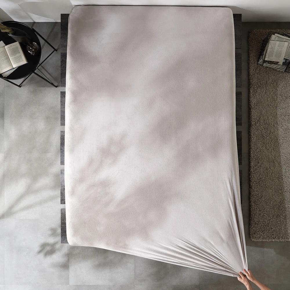 なめらかでもっちり包み込み、丸洗いで清潔が続く暖かベロア寝具 クイーン~キング ボックスシーツ単品 ライトグレー