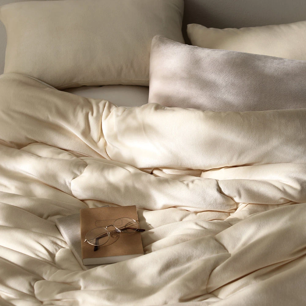 なめらかでもっちり包み込み、丸洗いで清潔が続く暖かベロア寝具 シングル 掛け布団単品 バニラ