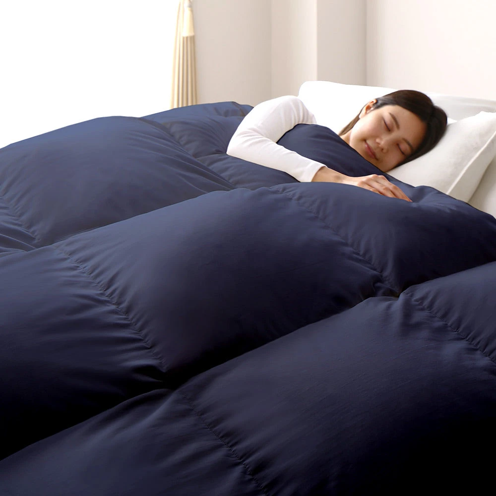 1ふんわり軽く清潔が続く、安心品質の日本製羽毛掛け布団 シングル ダウン率93% ネイビー