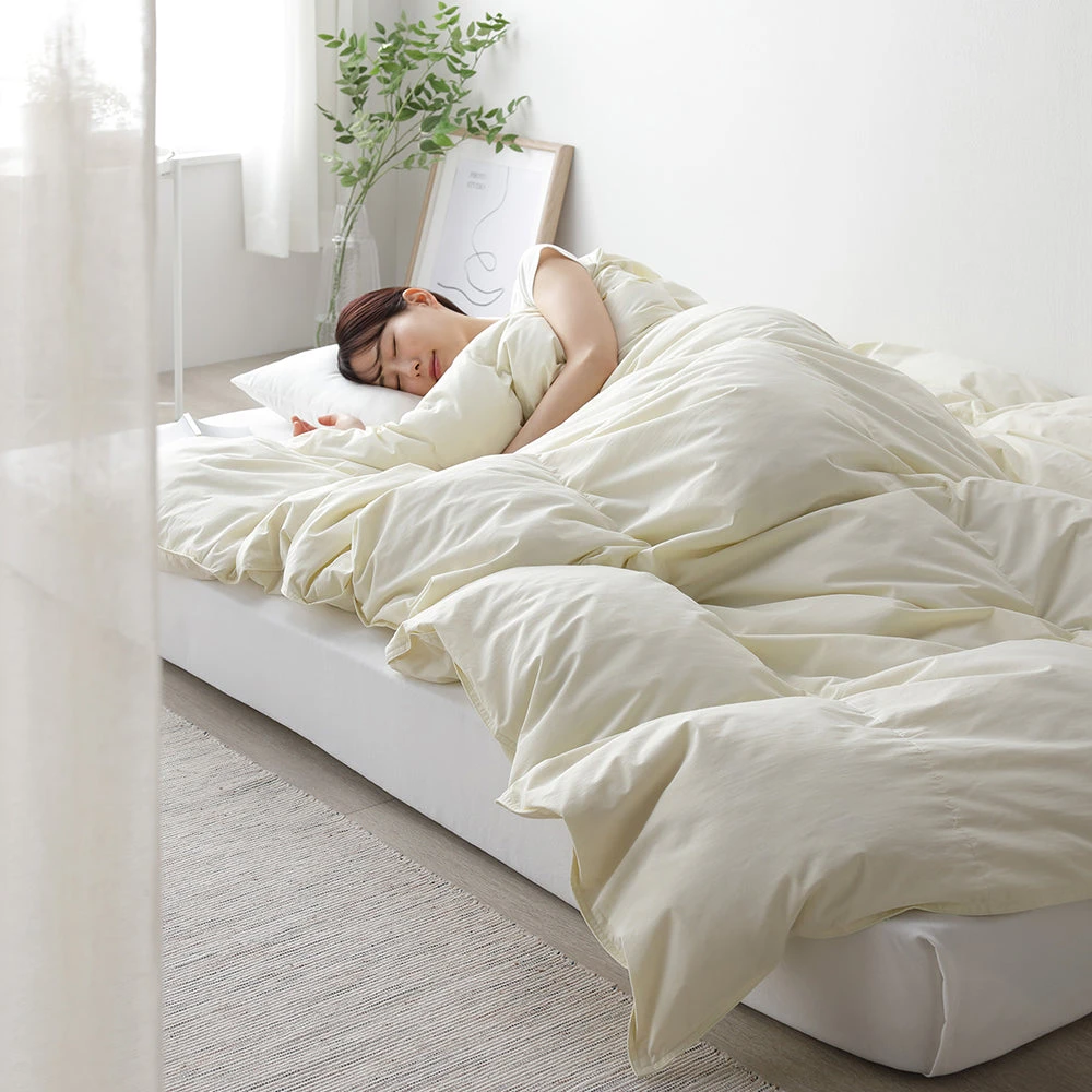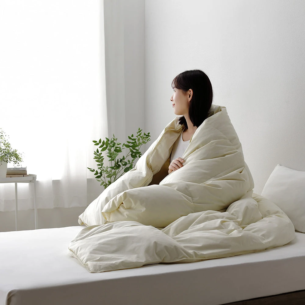 1ふんわり軽く清潔が続く、安心品質の日本製羽毛掛け布団 ダブル ダウン率90% アイボリー
