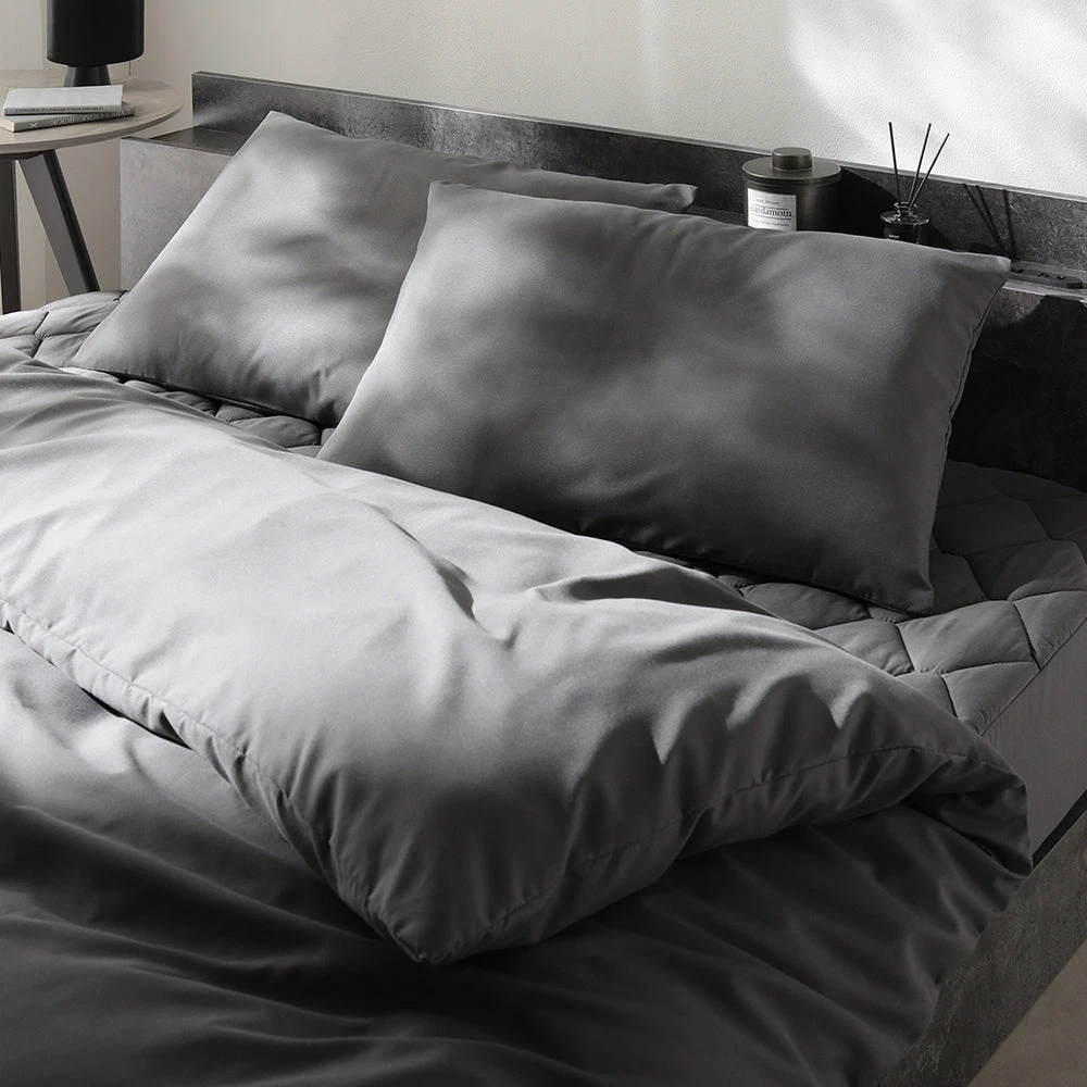 洗える布団フルセット 枕2つ・収納ケース付き チャコールグレー ワイドキング200cm 全部入りフルセット ダブル(8点セット)/ワイドキング200cm(10点セット)