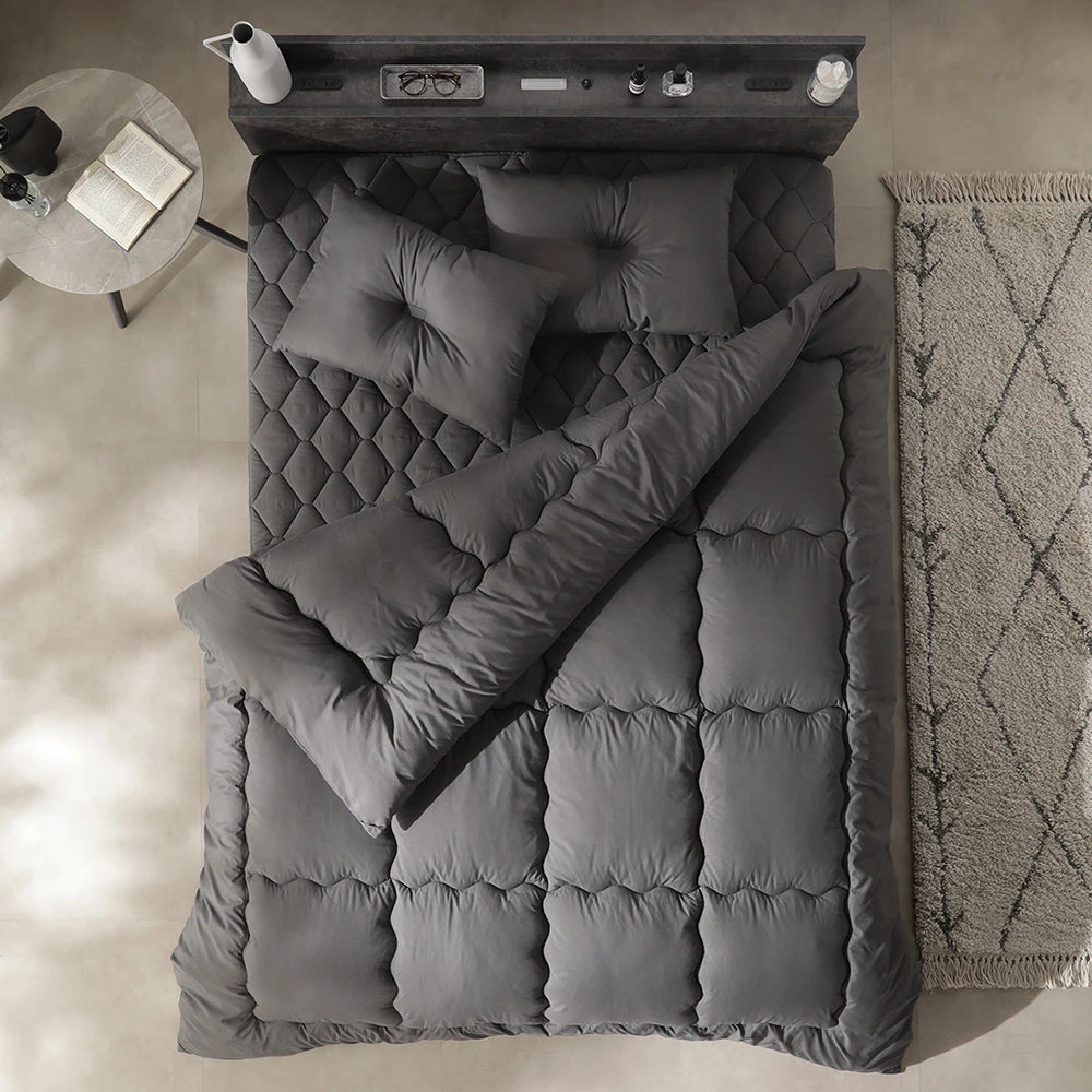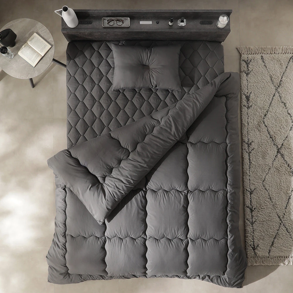 洗える布団フルセット 枕2つ・収納ケース付き チャコールグレー ダブル 全部入りフルセット ダブル(8点セット)/ワイドキング200cm(10点セット)