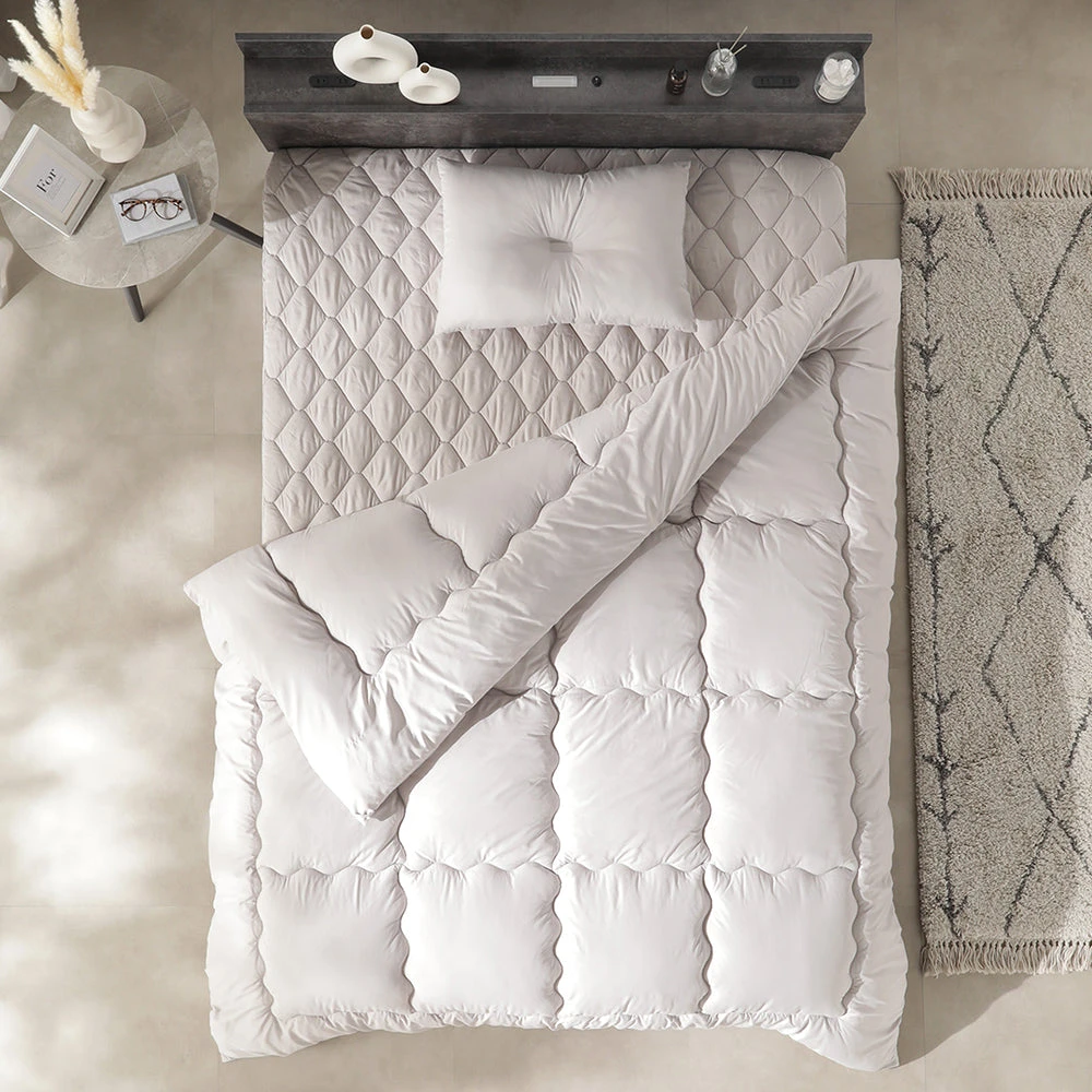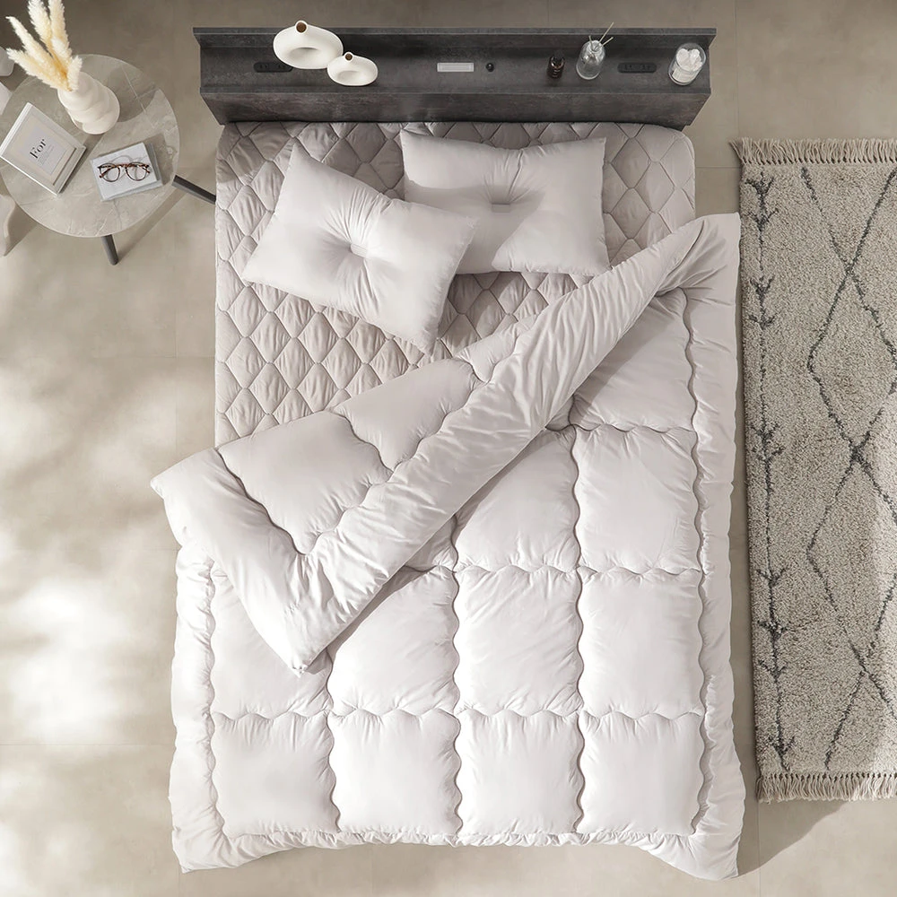 洗える布団フルセット 枕2つ・収納ケース付き グレージュ ダブル 全部入りフルセット ダブル(8点セット)/ワイドキング200cm(10点セット)