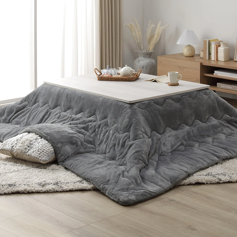 姿勢に合う高さで食事も作業も快適に保てるこたつ掛け布団セット(テーブル:約90×60cm、掛け布団:約230×200cm) ナチュラル×グレージュ テーブル:約80×80cm/掛け布団:約220×220cm