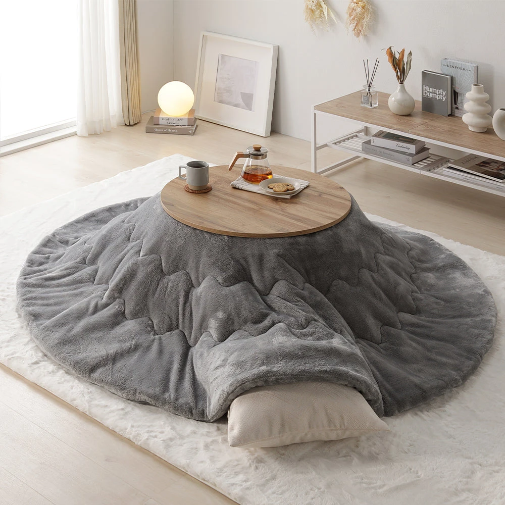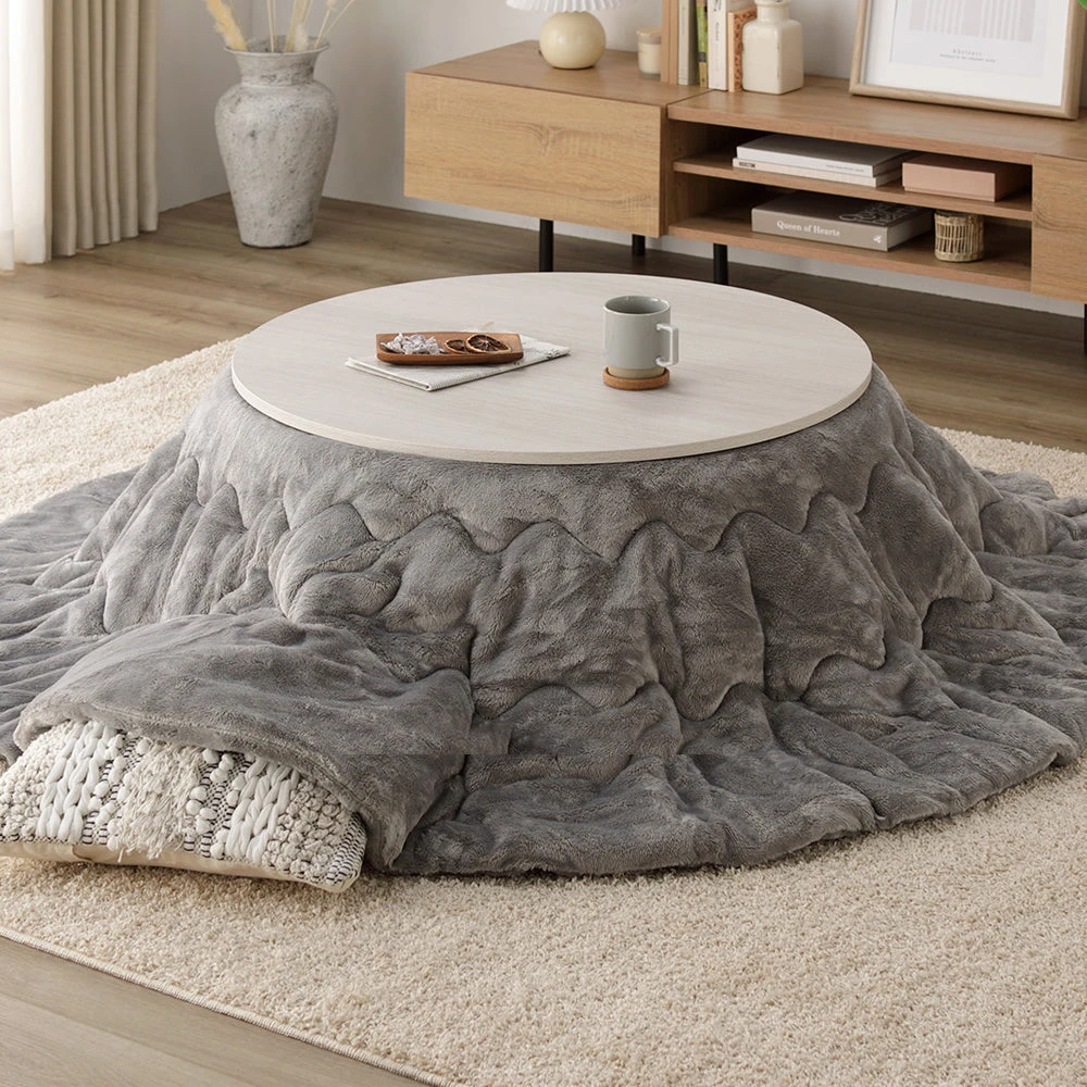 折りたたみで片付けが簡単、起毛のぬくもりで快適な円形こたつセット ホワイトウォッシュ×ナチュラル/グレー