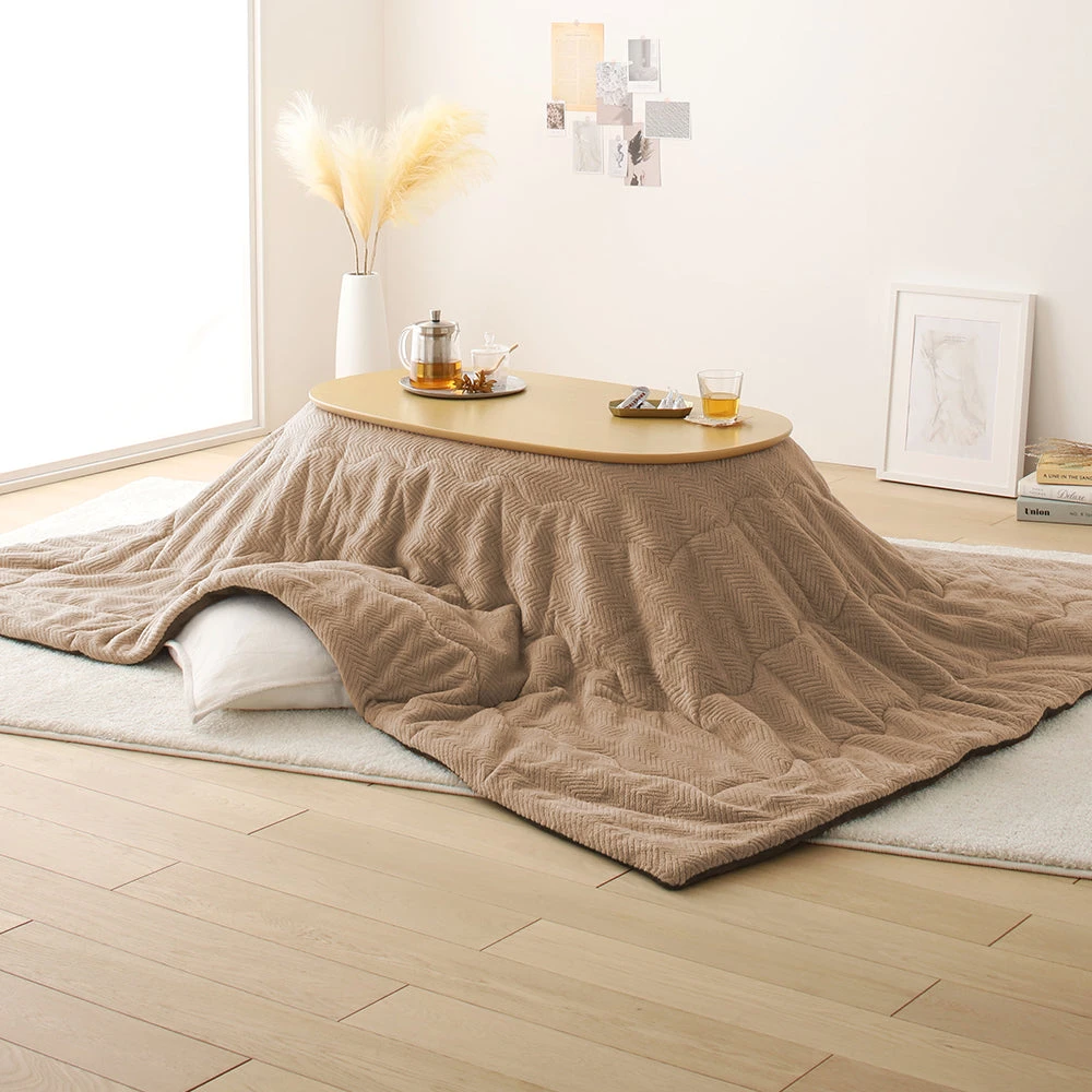 姿勢に合う高さで食事も作業も快適に保てるこたつ掛け布団セット(テーブル:約90×60cm、掛け布団:約230×200cm) ナチュラル×グレージュ テーブル:約105×80cm/掛け布団:約245×220cm