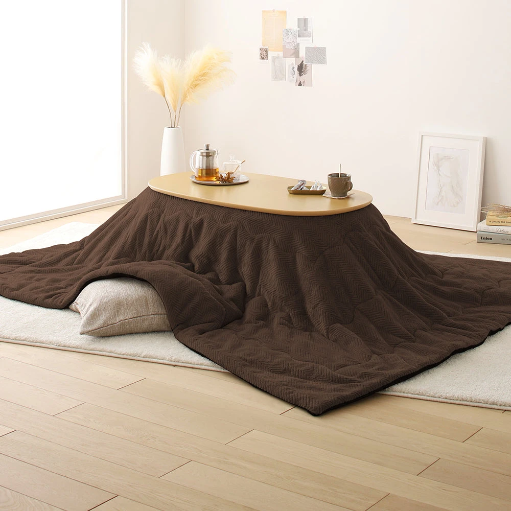 姿勢に合う高さで食事も作業も快適に保てるこたつ掛け布団セット(テーブル:約90×60cm、掛け布団:約230×200cm) ダークブラウン×グレージュ テーブル:約135×80cm/掛け布団:約275×220cm