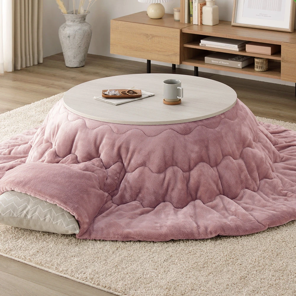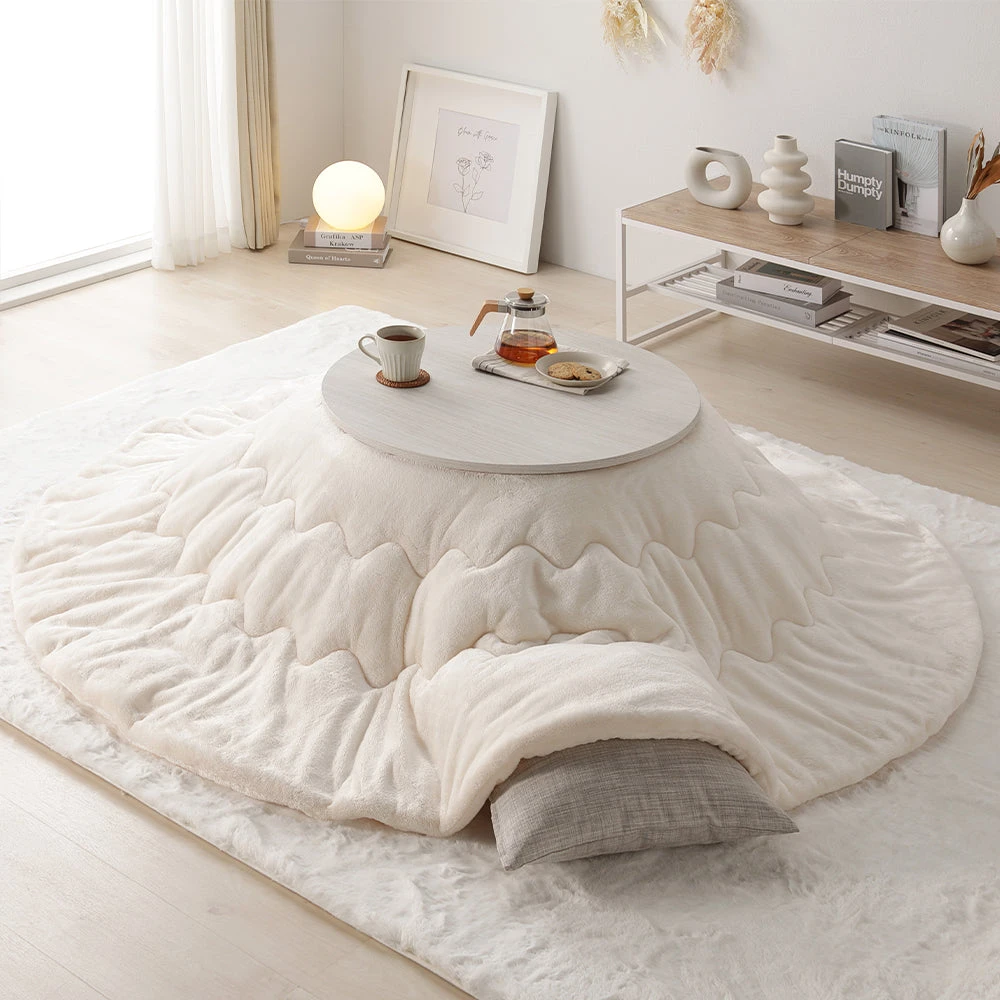 折りたたみで片付けが簡単、起毛のぬくもりで快適な円形こたつセット ホワイトウォッシュ×ナチュラル/アイボリー