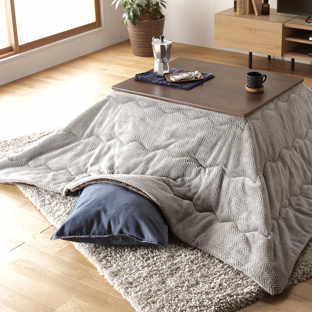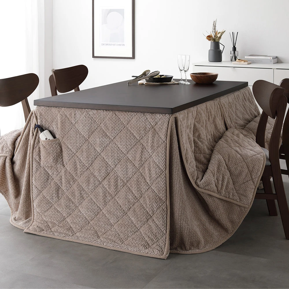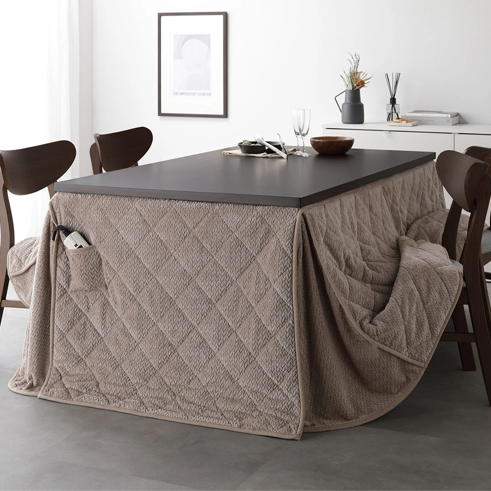 姿勢に合う高さで食事も作業も快適に保てるこたつ掛け布団セット(テーブル:約90×60cm、掛け布団:約230×200cm) ダークブラウン×グレージュ テーブル:約105×80cm/掛け布団:約245×220cm