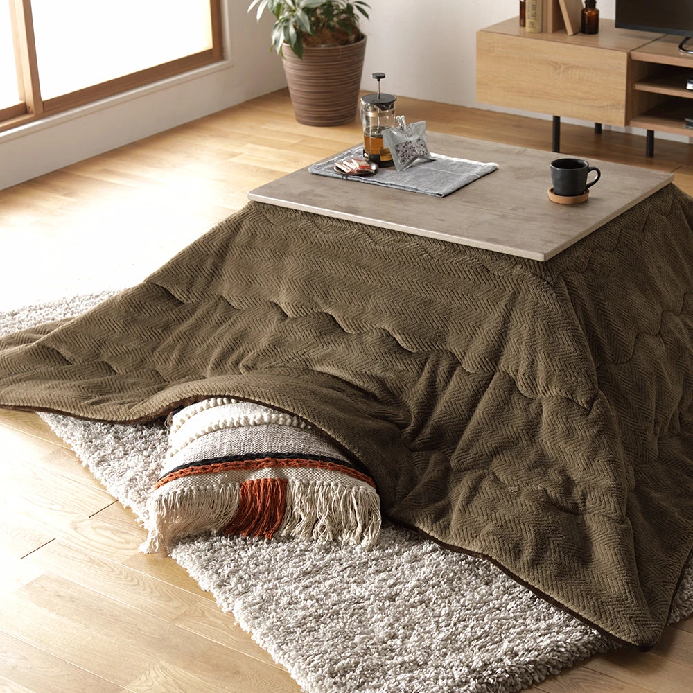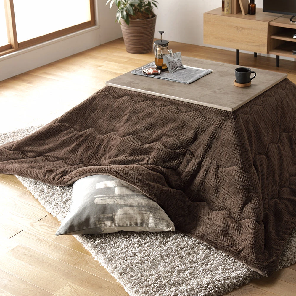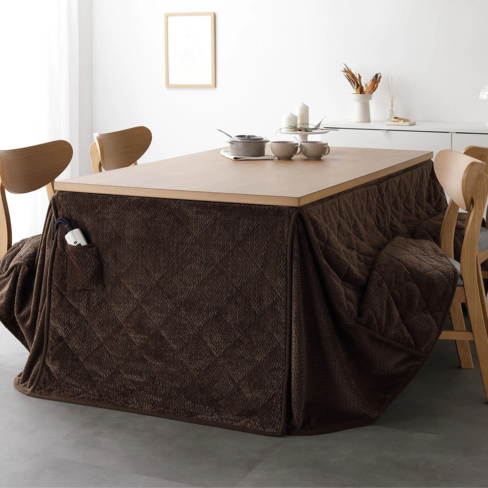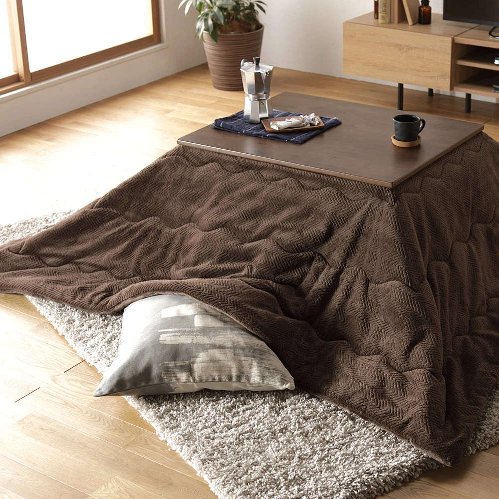 姿勢に合う高さで食事も作業も快適に保てるこたつ掛け布団セット(テーブル:約90×60cm、掛け布団:約230×200cm) ダークブラウン×グレージュ テーブル:約105×80cm/掛け布団:約245×220cm