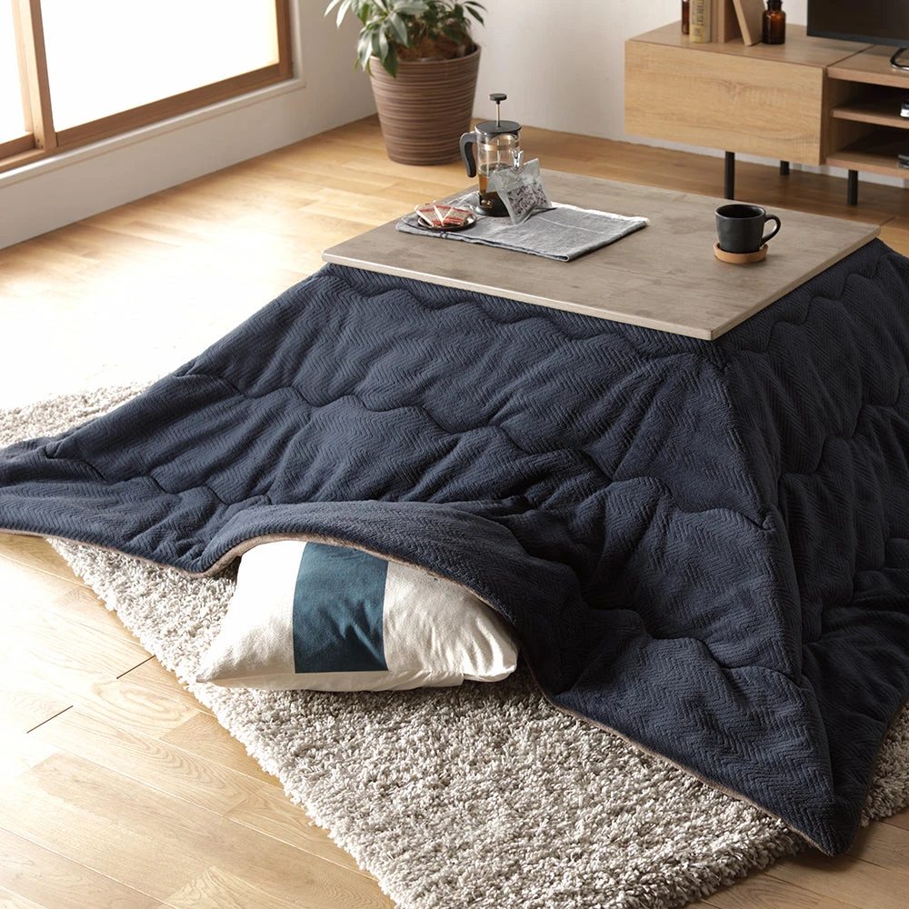 とろける質感で包み込む古木風こたつテーブル マイクロファイバーこたつ掛け布団 2点セット ナチュラル ネイビー