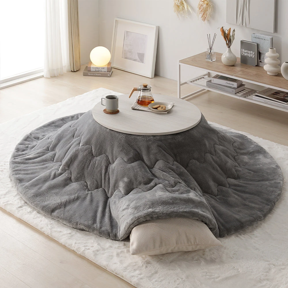 折りたたみで片付けが簡単、起毛のぬくもりで快適な円形こたつセット ホワイトウォッシュ×ナチュラル/グレー