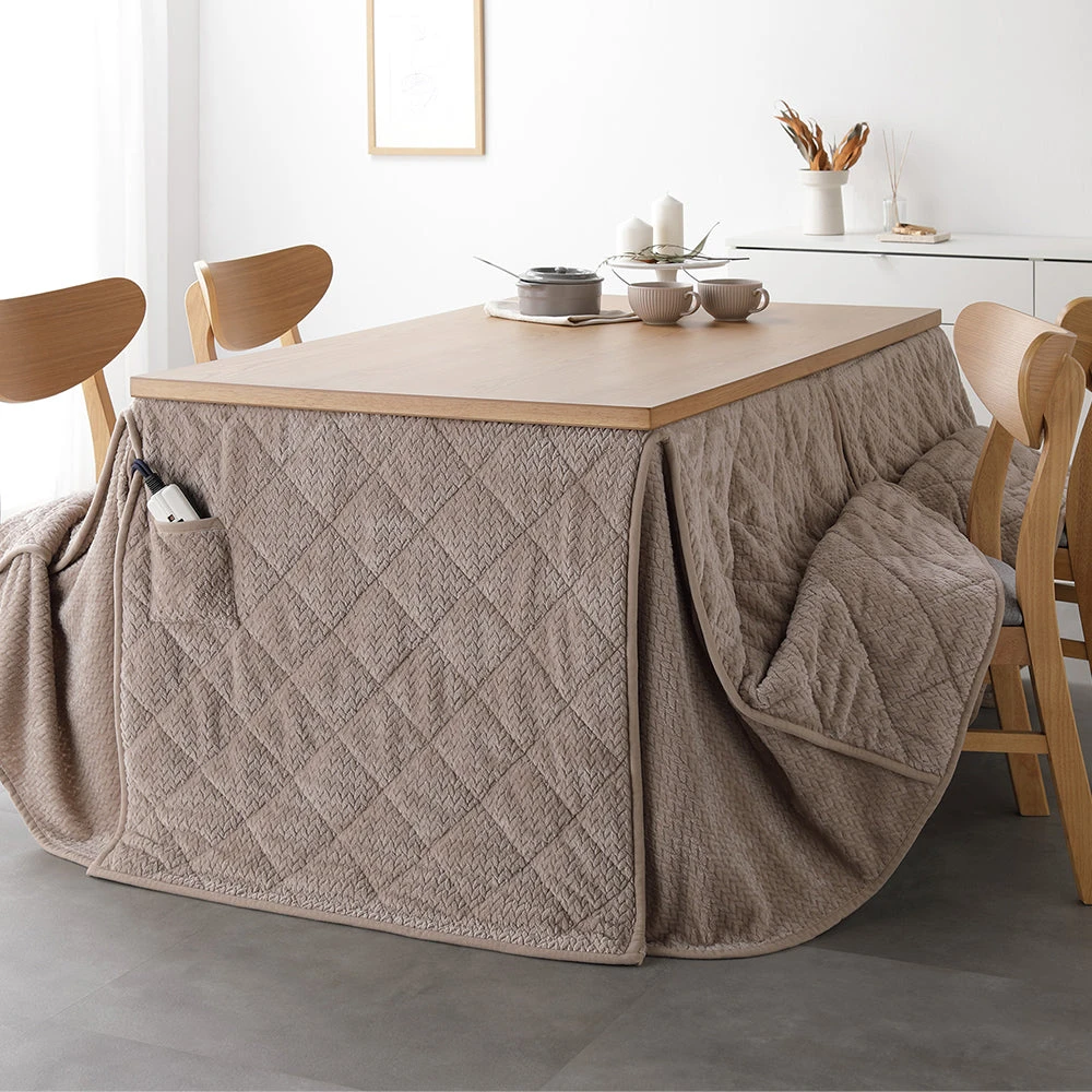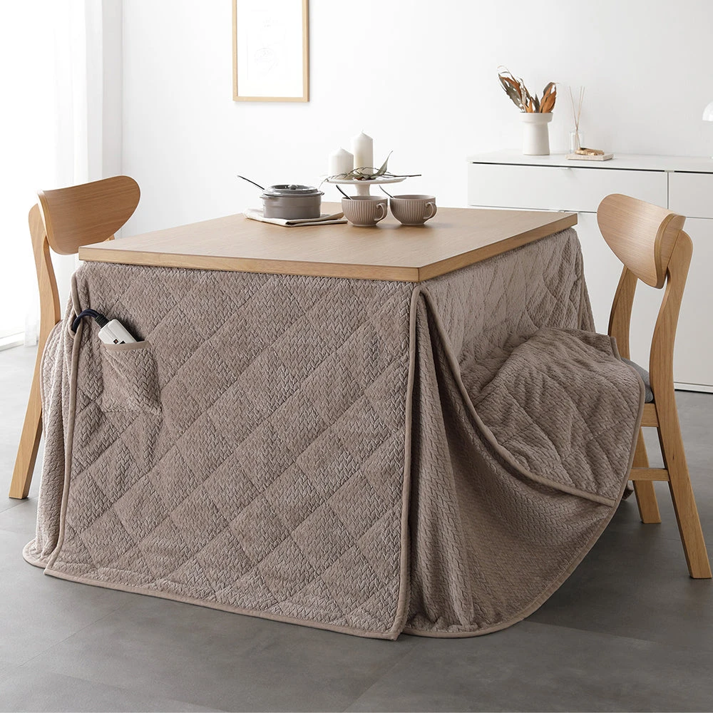 姿勢に合う高さで食事も作業も快適に保てるこたつ掛け布団セット(テーブル:約90×60cm、掛け布団:約230×200cm) ナチュラル×グレージュ テーブル:約80×80cm/掛け布団:約220×220cm