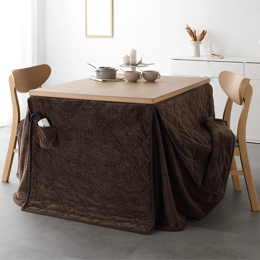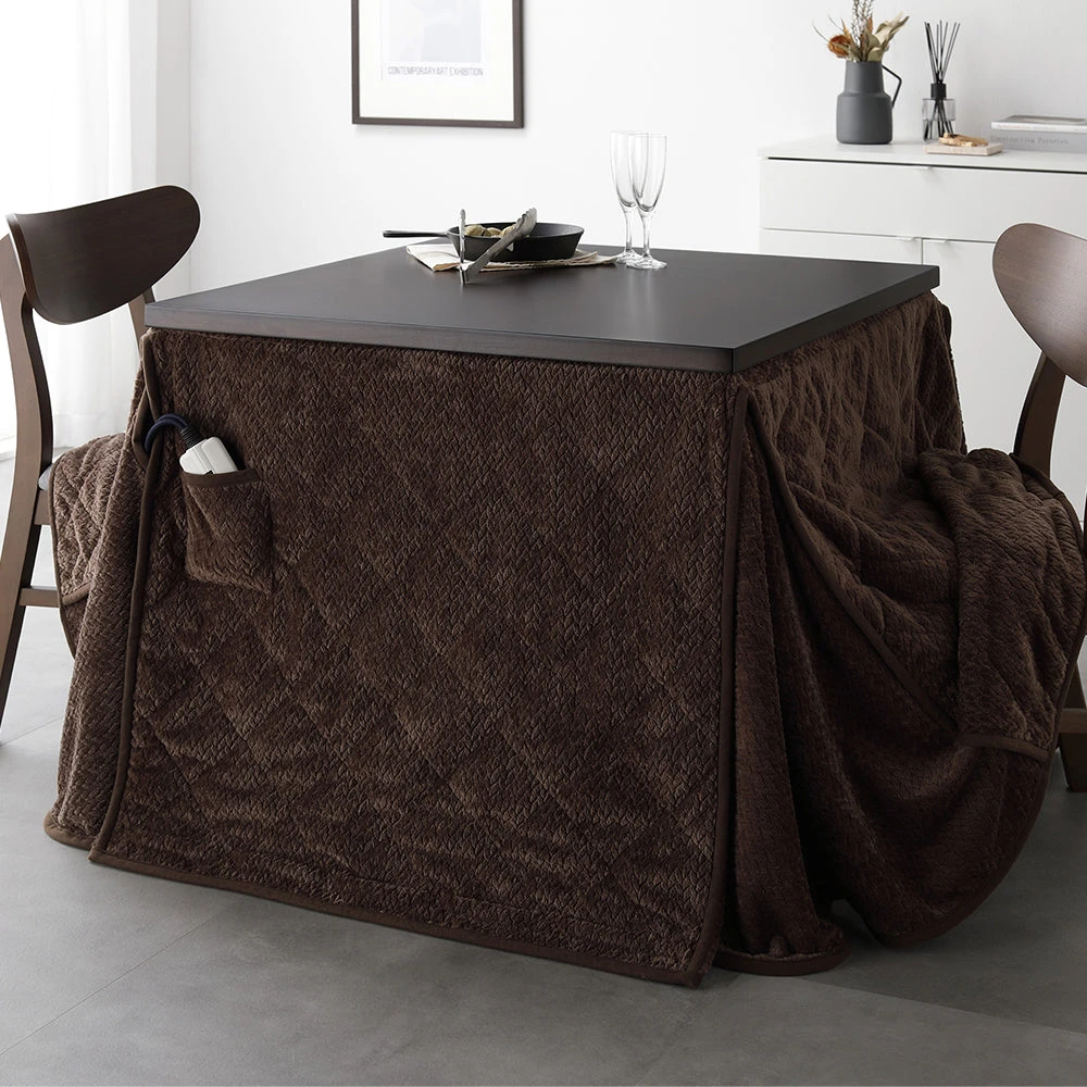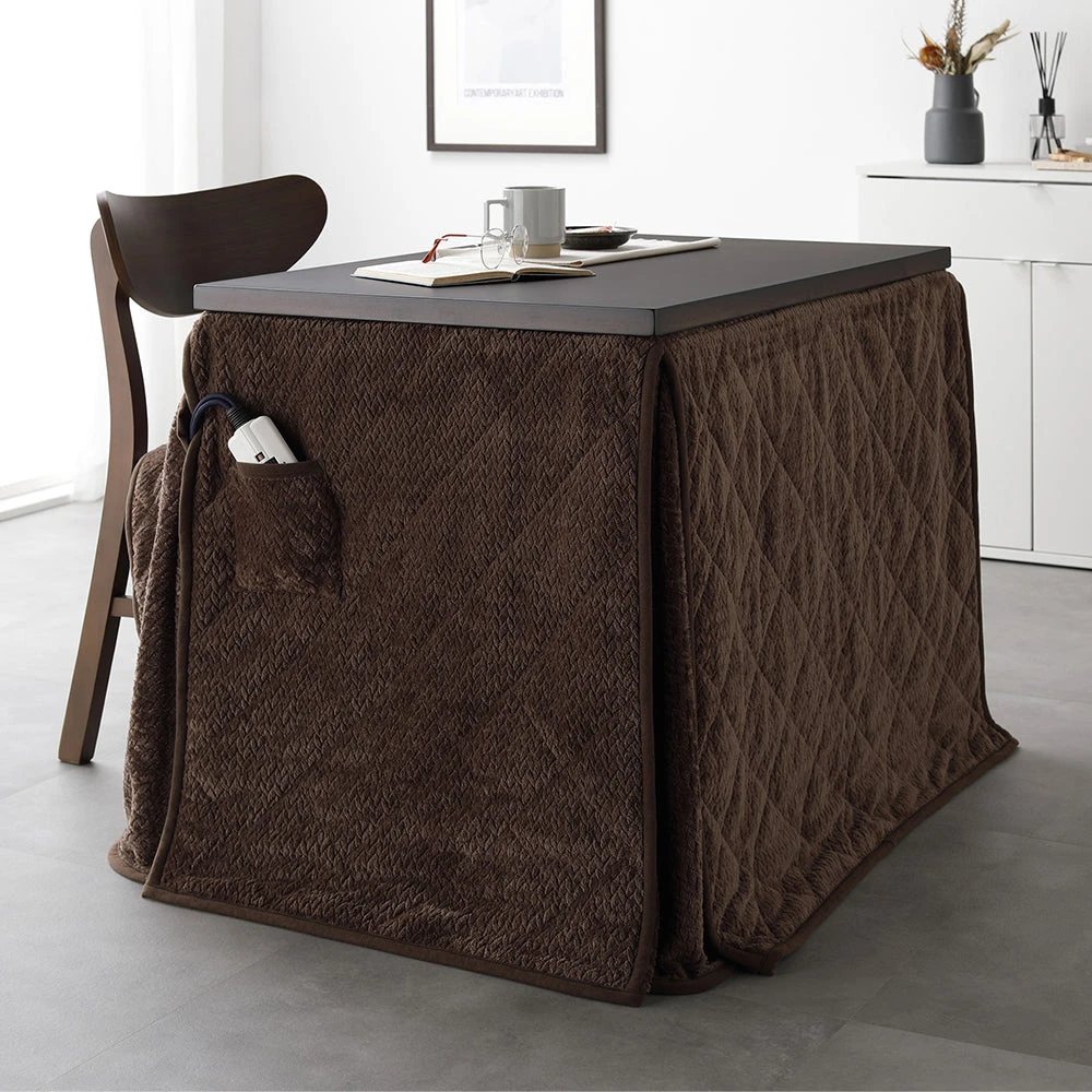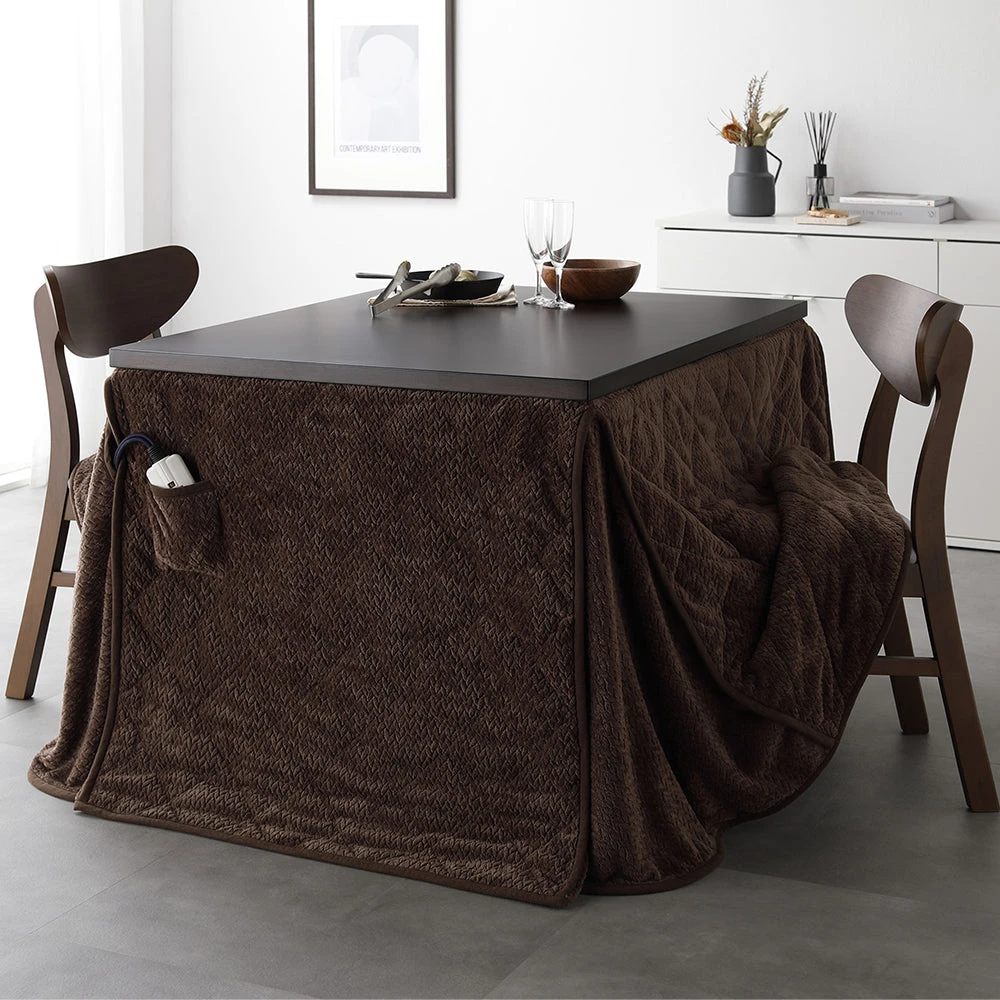 姿勢に合う高さで食事も作業も快適に保てるこたつ掛け布団セット(テーブル:約90×60cm、掛け布団:約230×200cm) ダークブラウン×ダークブラウン テーブル:約80×80cm/掛け布団:約220×220cm