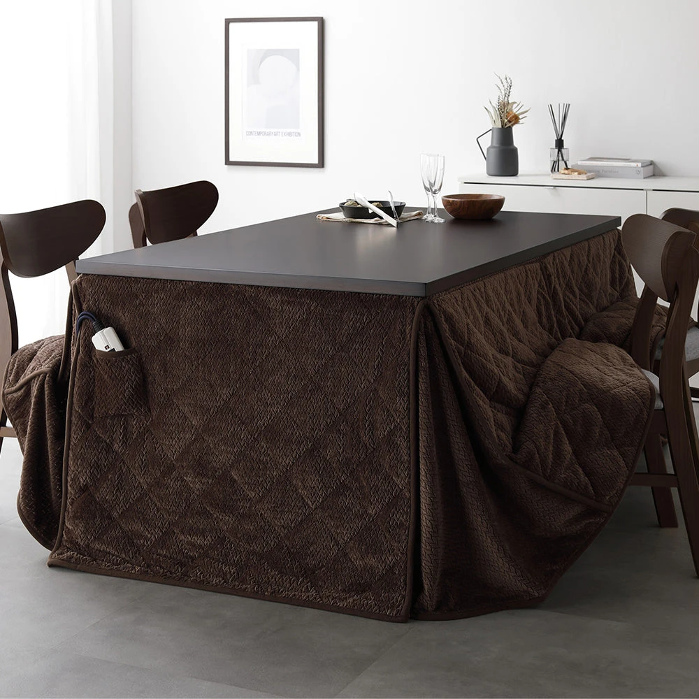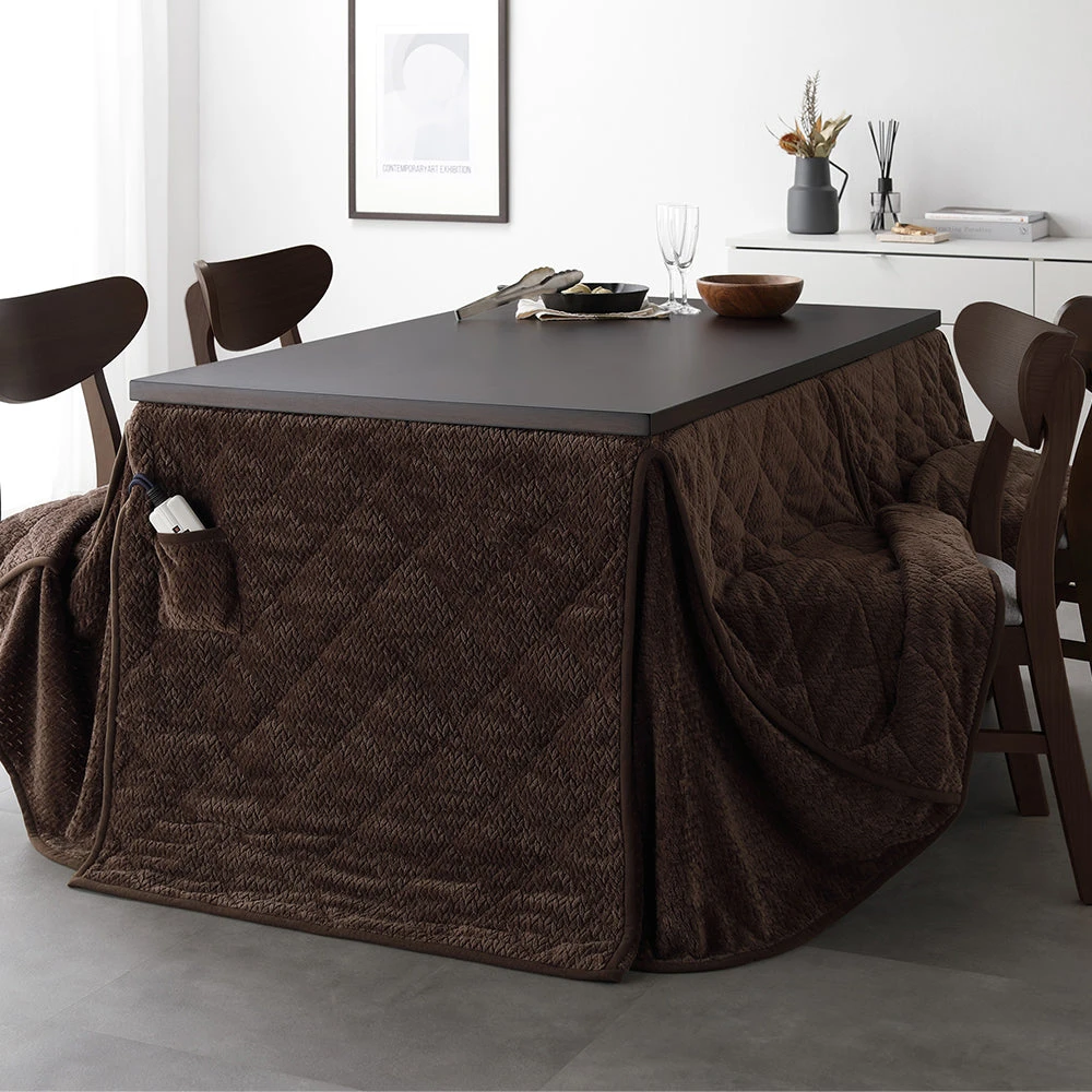姿勢に合う高さで食事も作業も快適に保てるこたつ掛け布団セット(テーブル:約90×60cm、掛け布団:約230×200cm) ダークブラウン×ダークブラウン テーブル:約105×80cm/掛け布団:約245×220cm