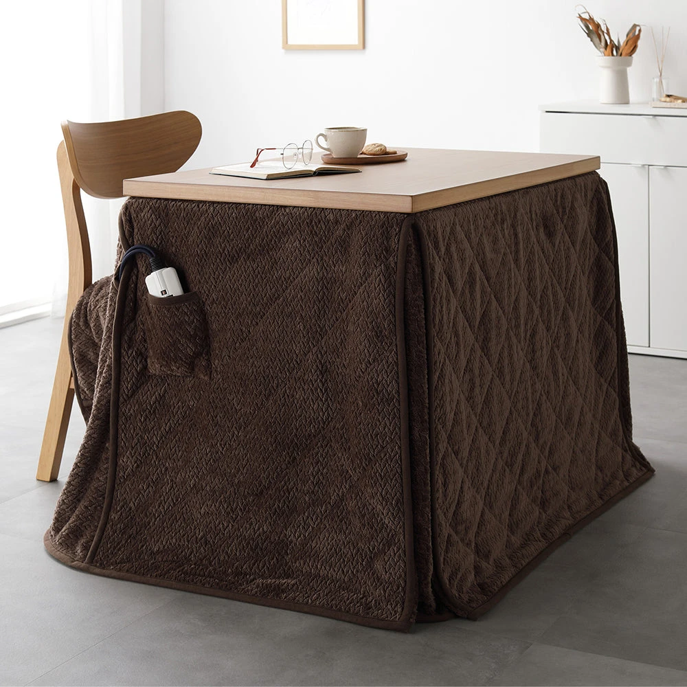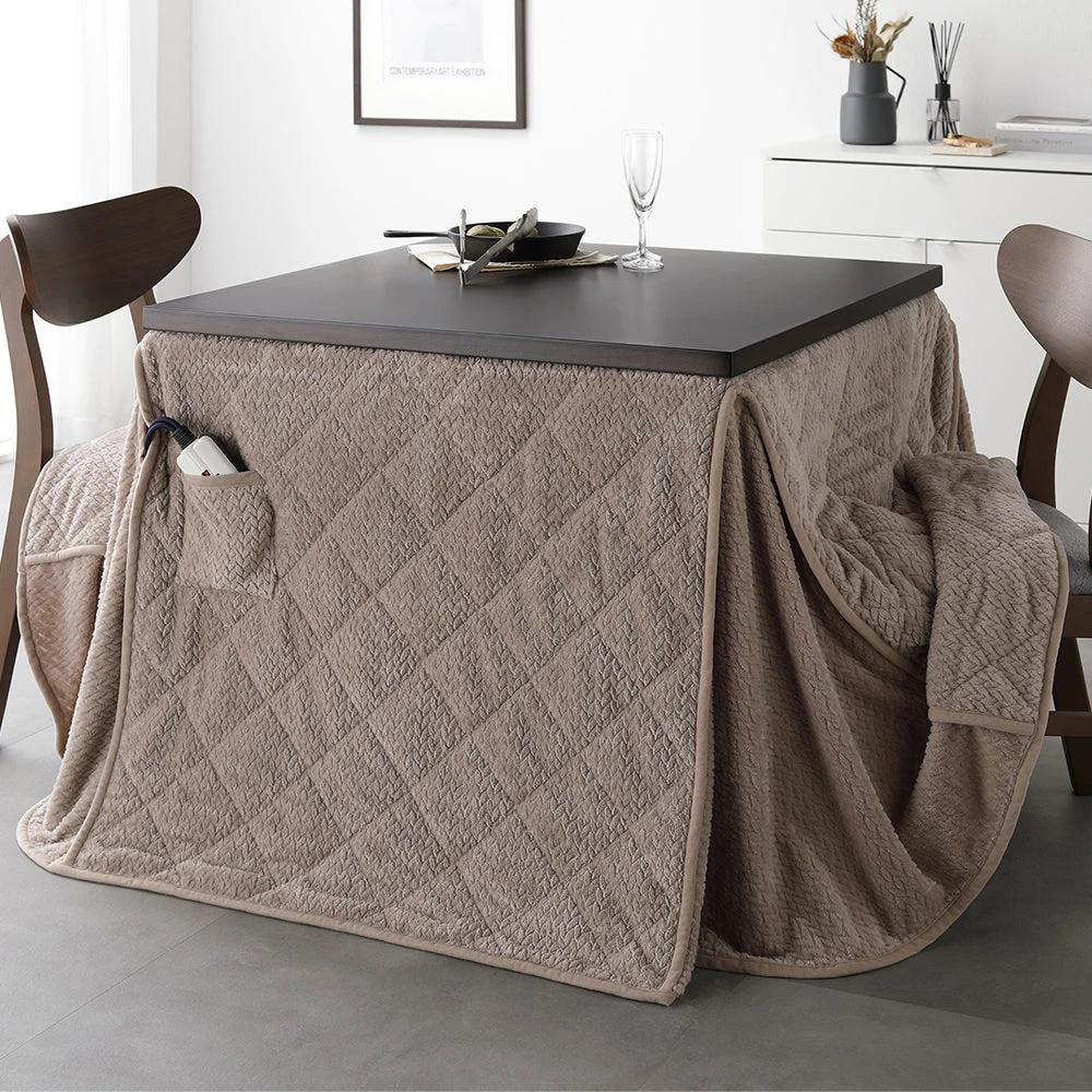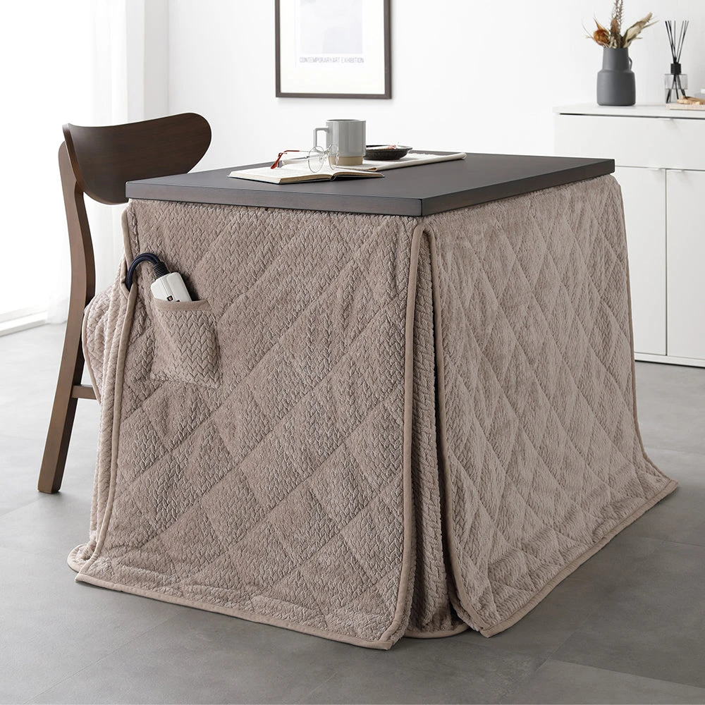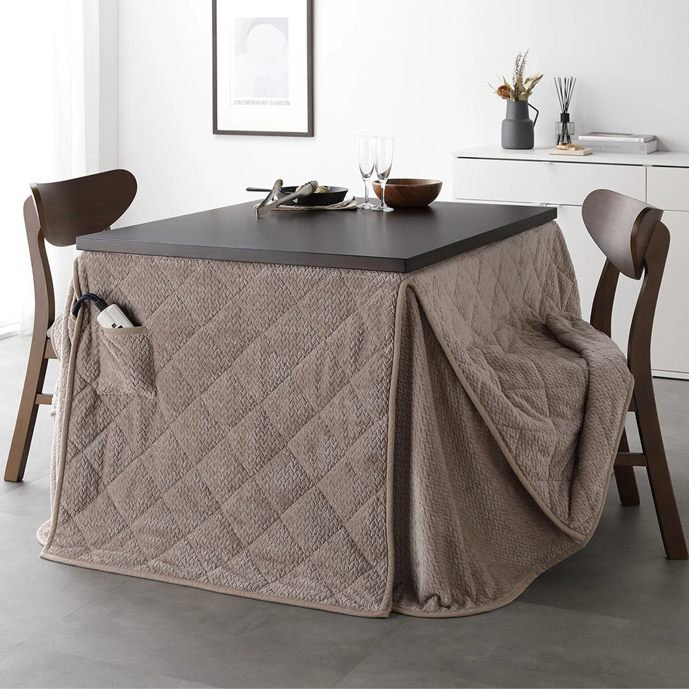 姿勢に合う高さで食事も作業も快適に保てるこたつ掛け布団セット(テーブル:約90×60cm、掛け布団:約230×200cm) ダークブラウン×グレージュ テーブル:約80×80cm/掛け布団:約220×220cm