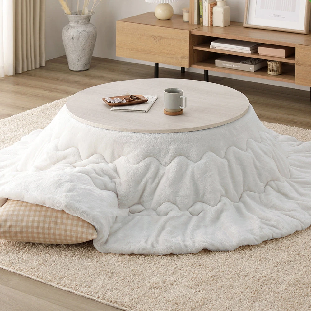 折りたたみで片付けが簡単、起毛のぬくもりで快適な円形こたつセット ホワイトウォッシュ×ナチュラル/ベージュ