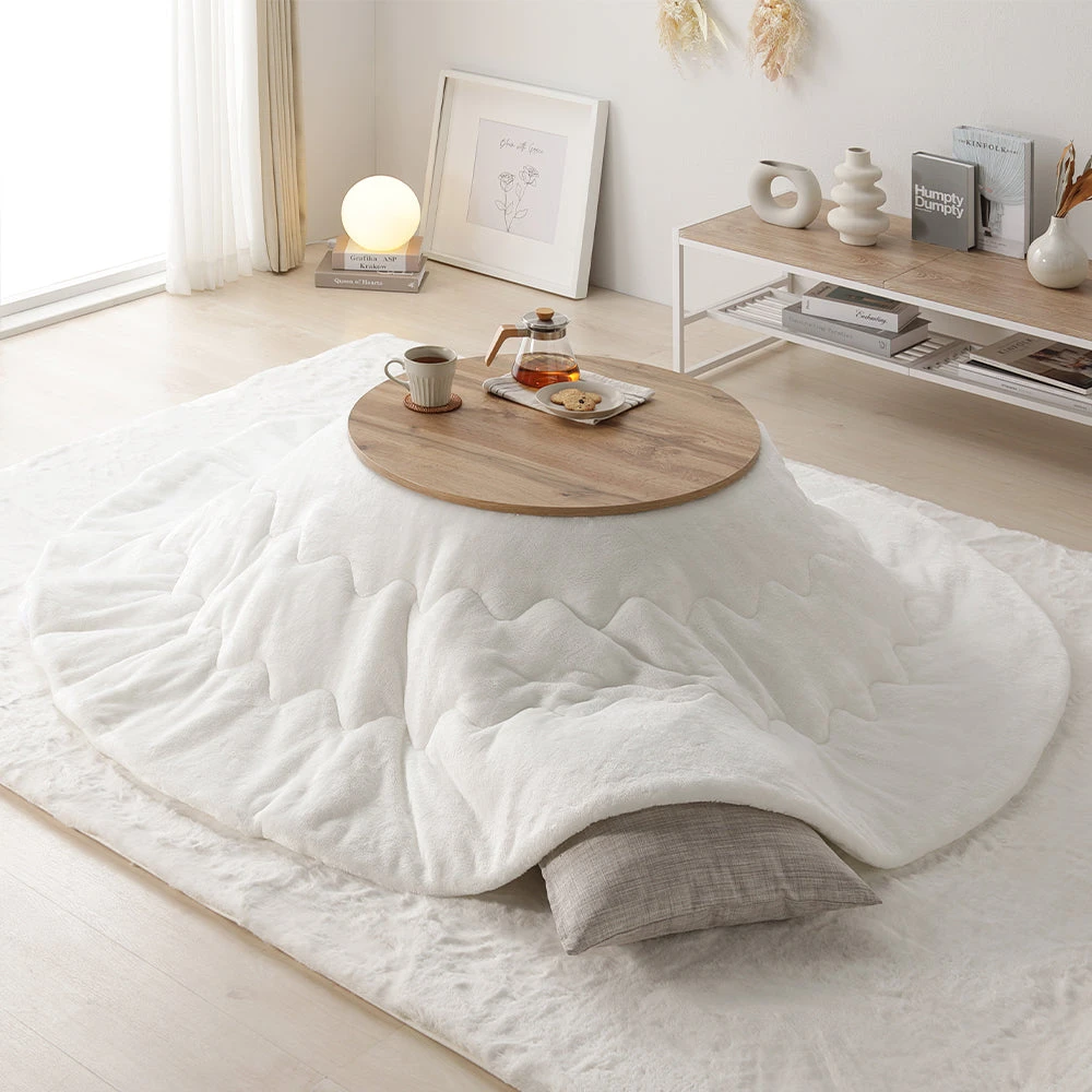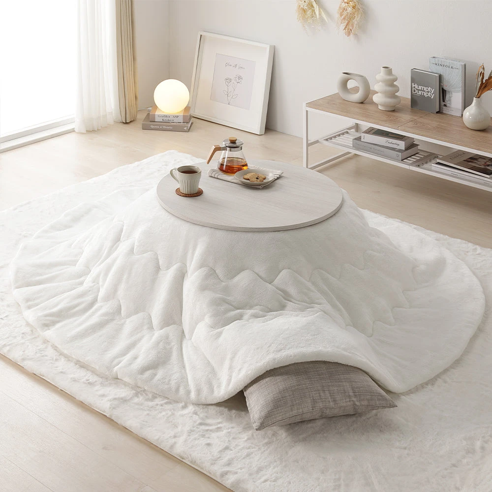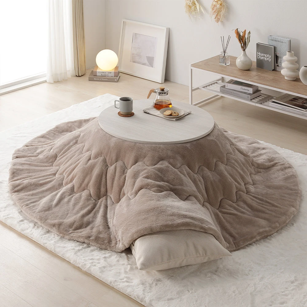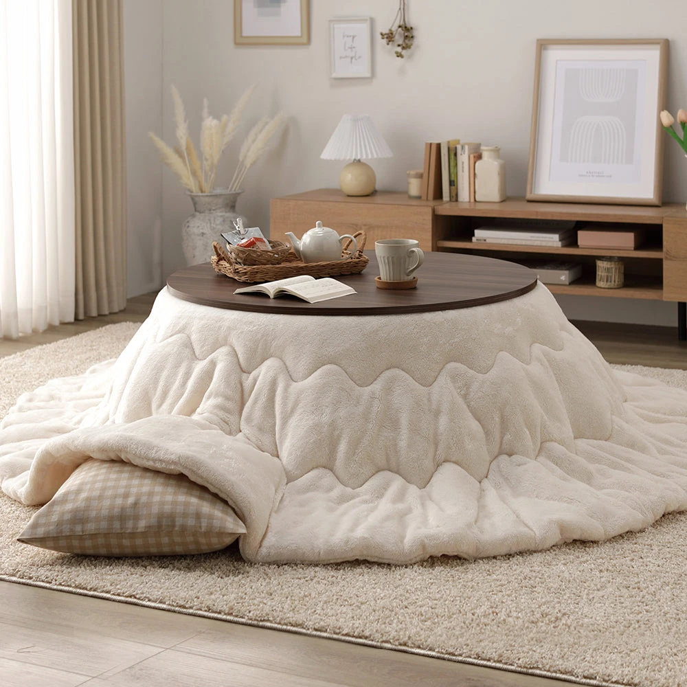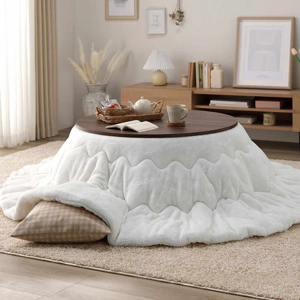 折りたたみで片付けが簡単、起毛のぬくもりで快適な円形こたつセット ライトブラウン/ホワイト