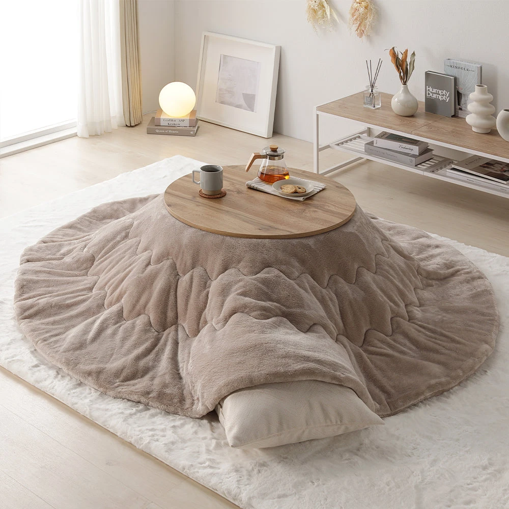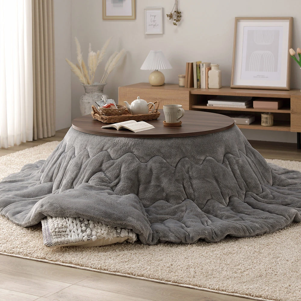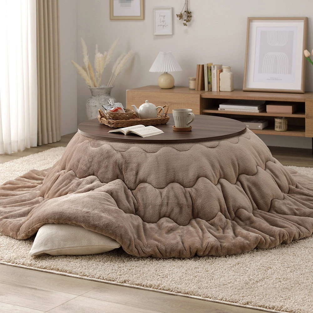 折りたたみで片付けが簡単、起毛のぬくもりで快適な円形こたつセット ライトブラウン/グレー