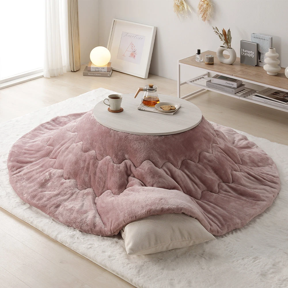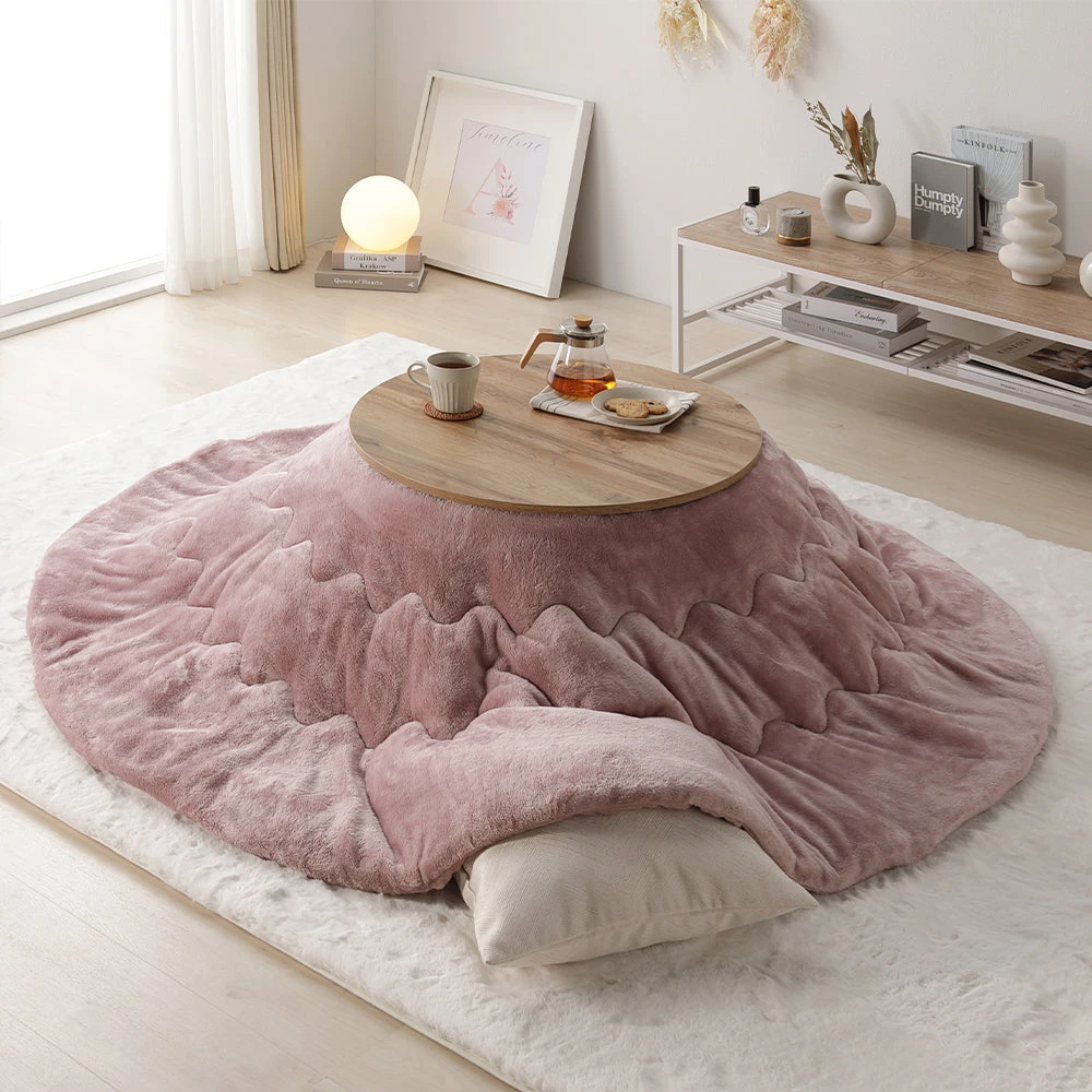 折りたたみで片付けが簡単、起毛のぬくもりで快適な円形こたつセット ライトブラウン/ピンク