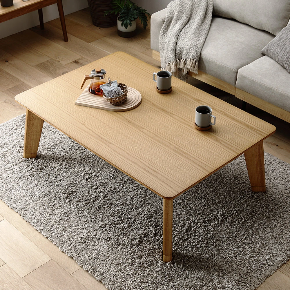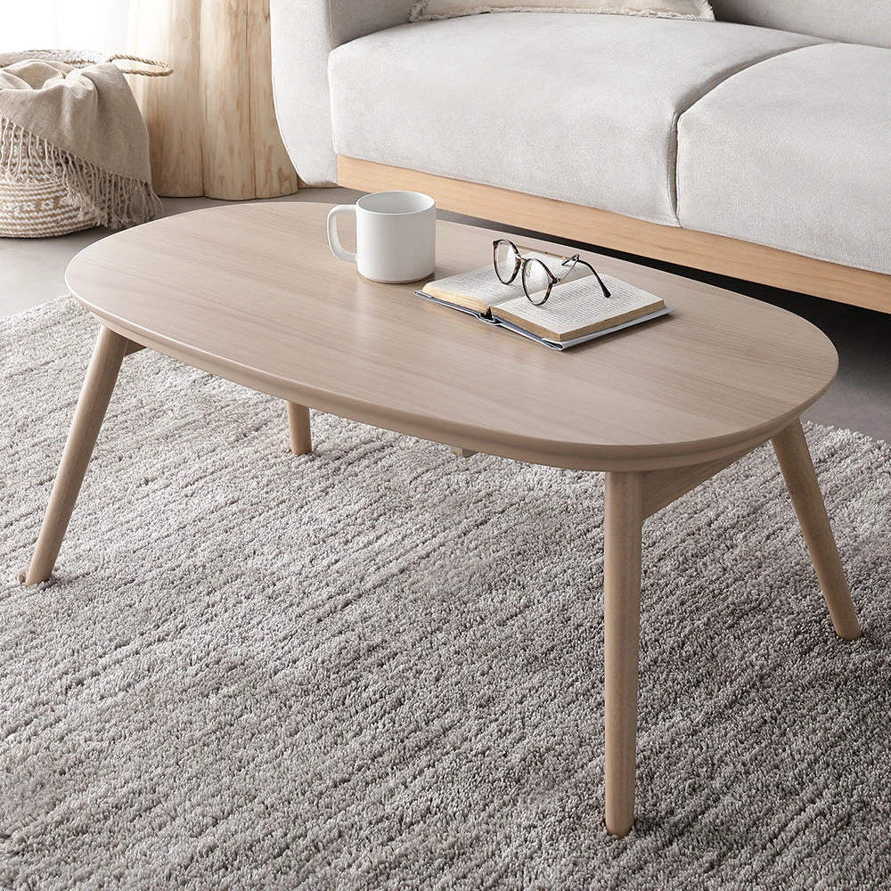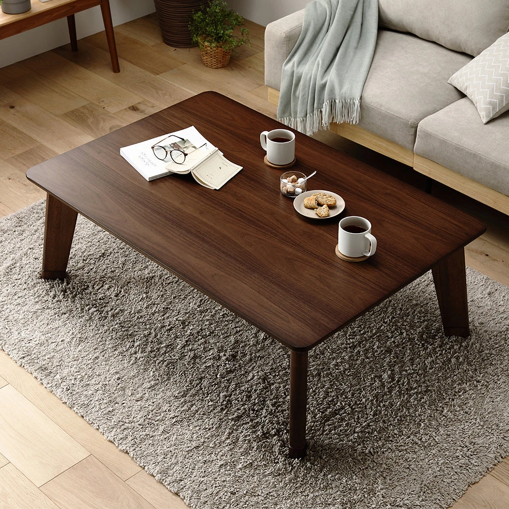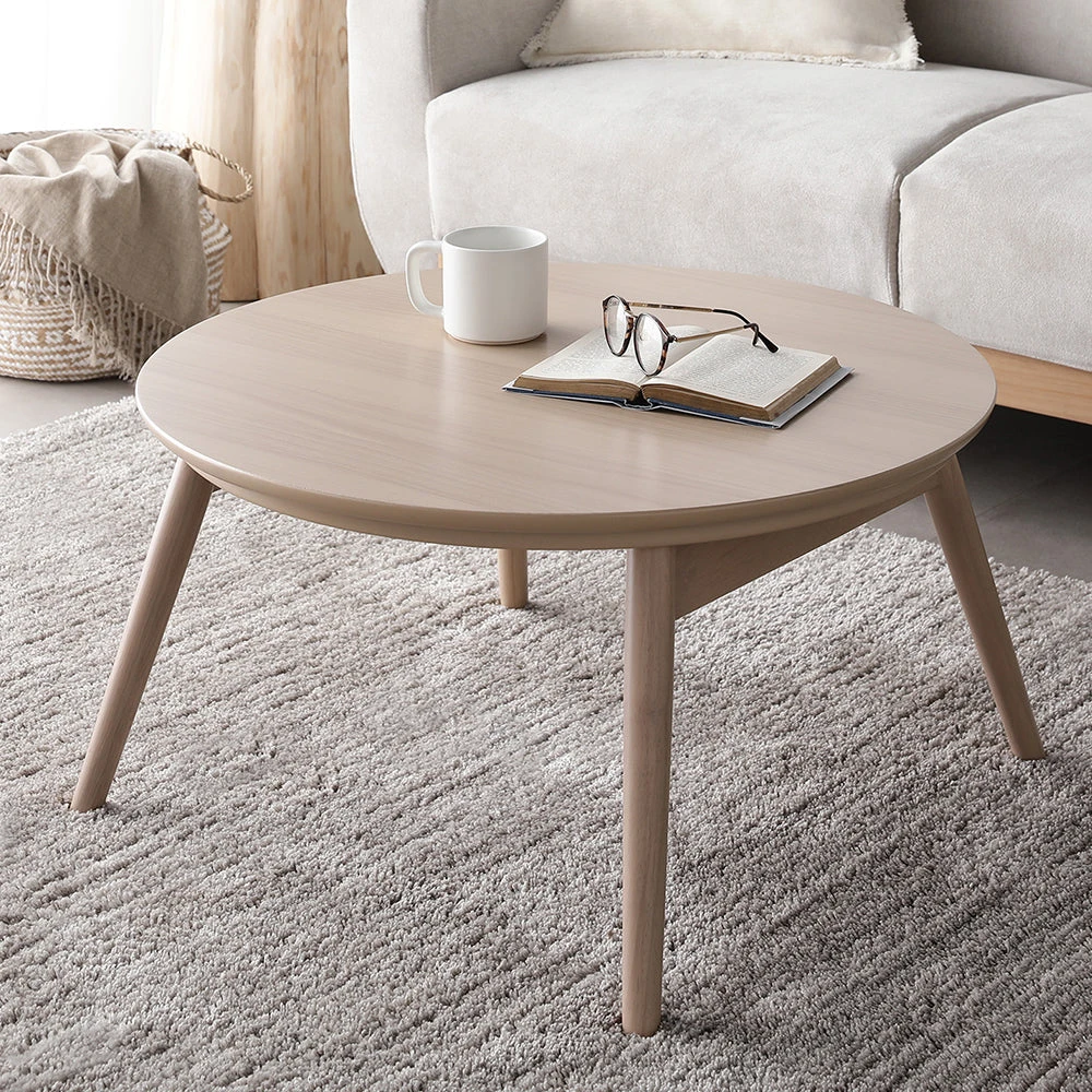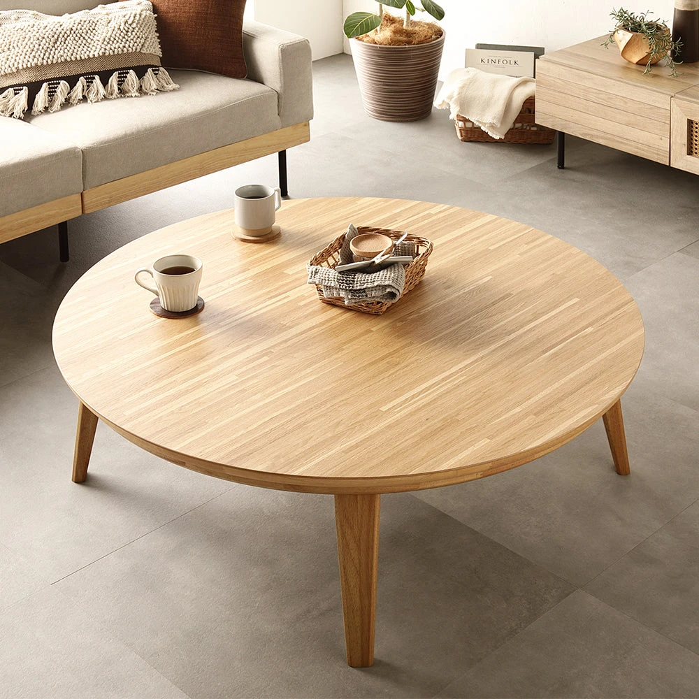 1木目の温もりと会話が弾むやさしい形で暮らし整う円形こたつテーブル ウォルナット 85cm