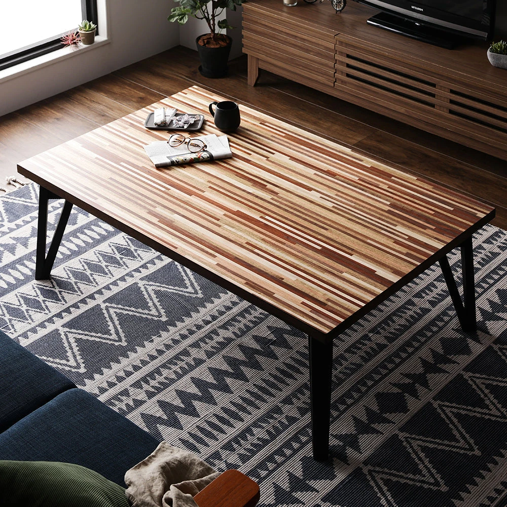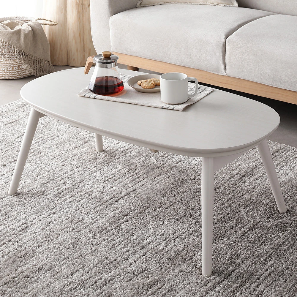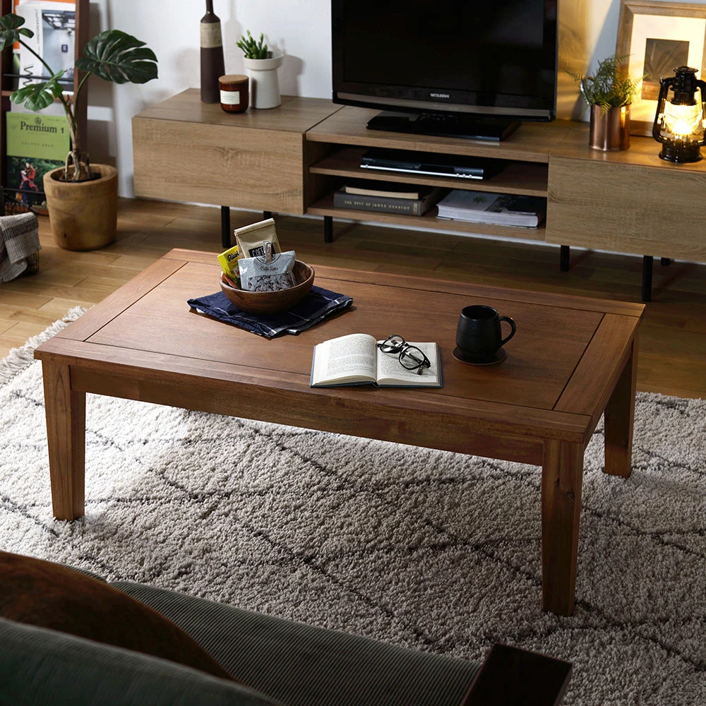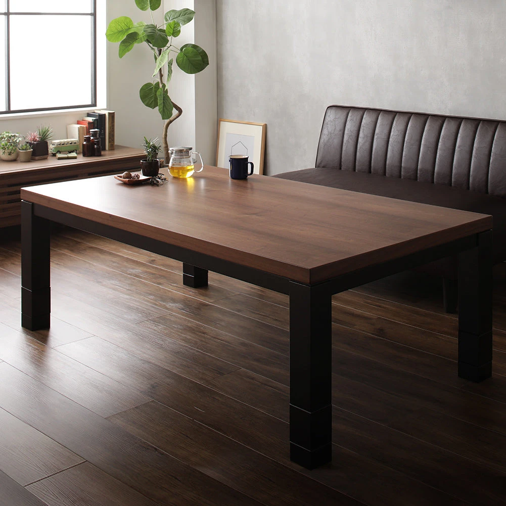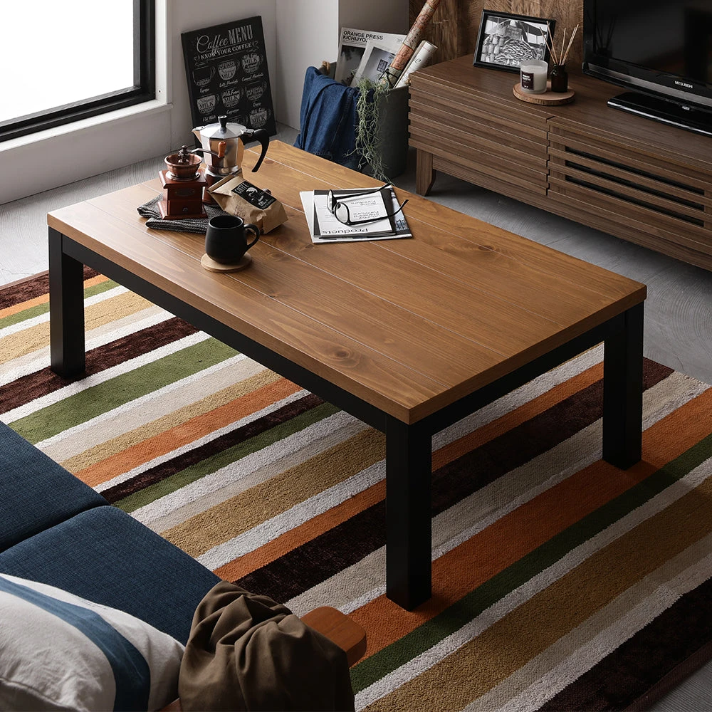 1木目の温もりと会話が弾むやさしい形で暮らし整う円形こたつテーブル ウォルナット 85cm