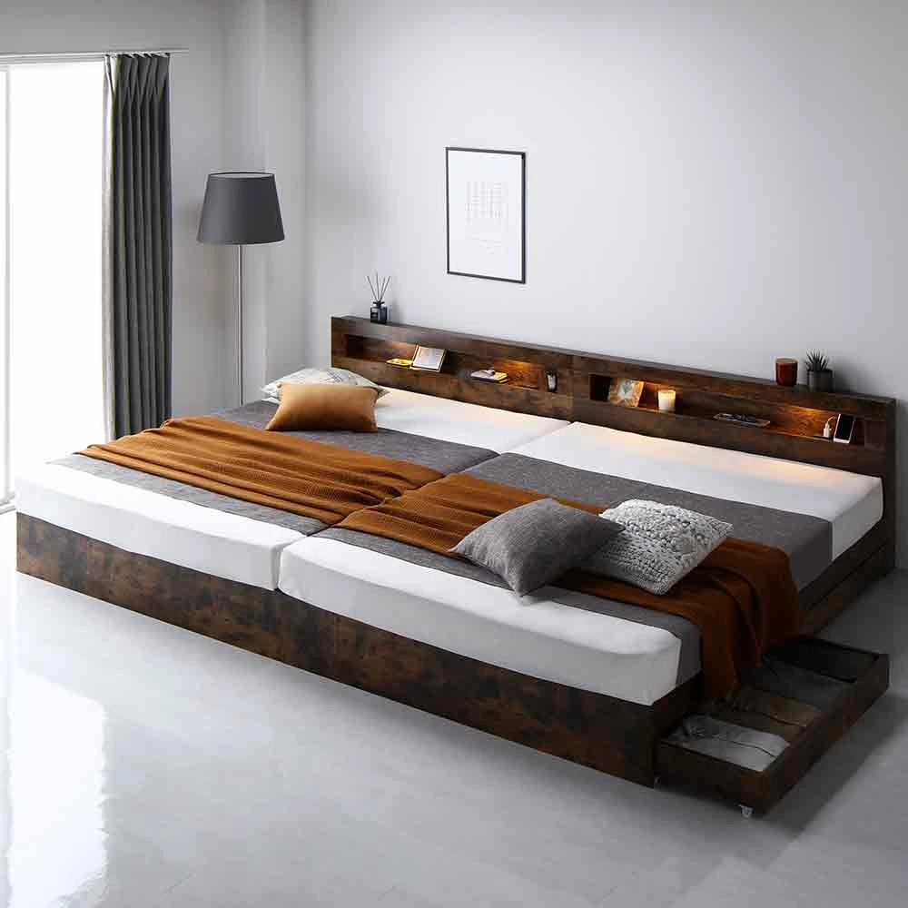 連結ベッド ワイドキング 収納付き ヴィンテージブラウン ワイドキング260cm(SD+D) 国産ポケットコイルマットレス付き(レギュラー)
