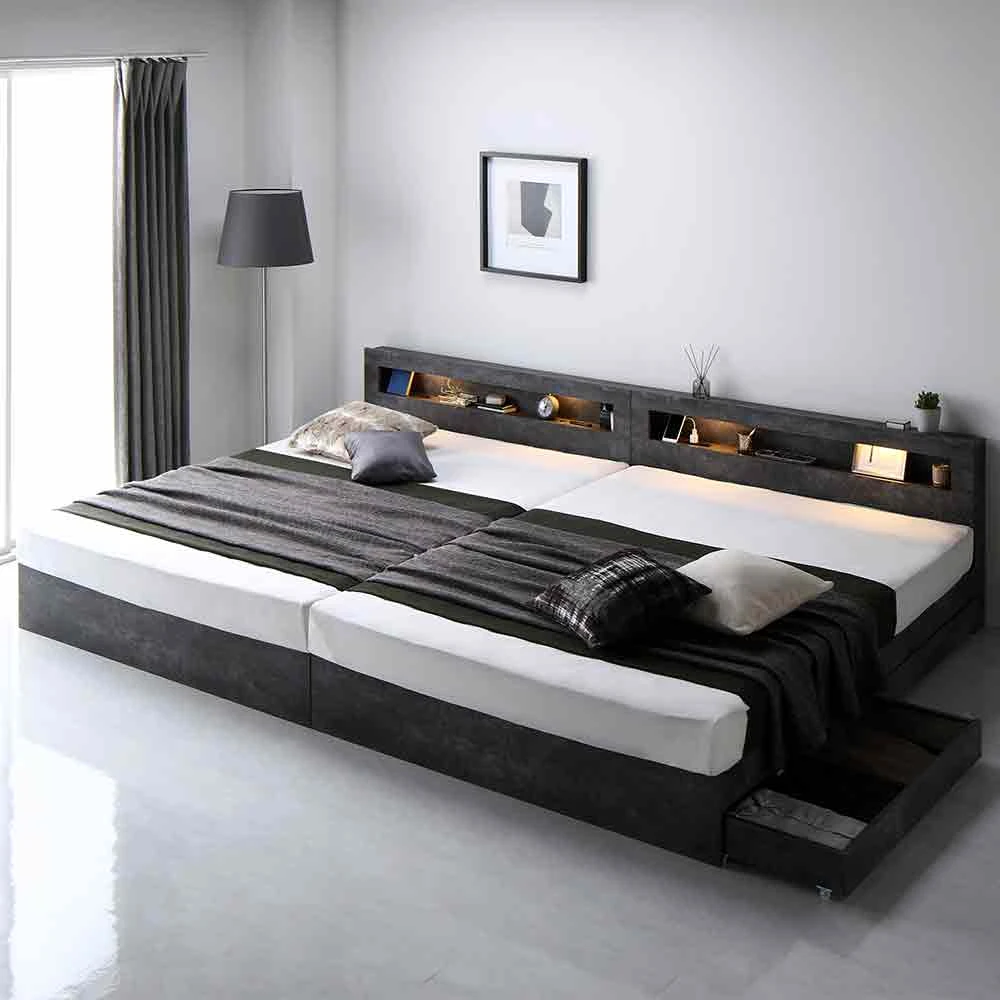連結ベッド ワイドキング 収納付き ストーングレー ワイドキング200cm(S+S) ベッドフレームのみ