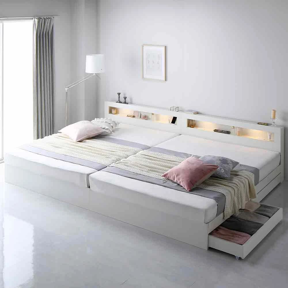 連結ベッド ワイドキング 収納付き ホワイト ワイドキング260cm(SD+D) ベッドフレームのみ