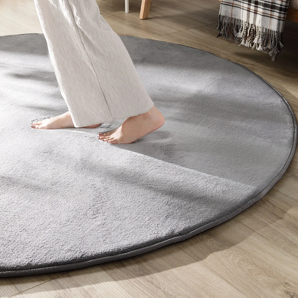 洗えて清潔、ふかふかの踏み心地が心地よいシャギーラグ グレー 円形(直径185cm)