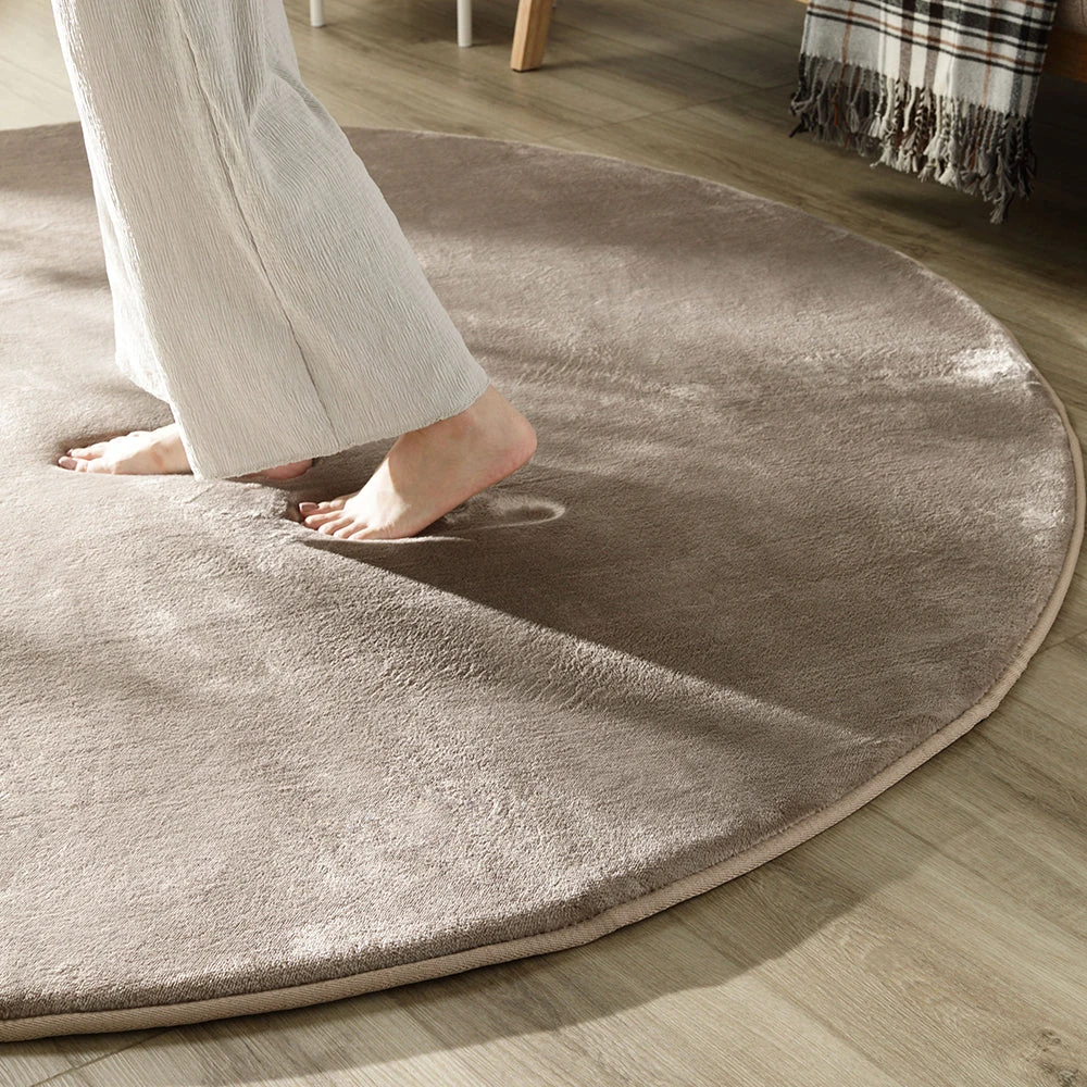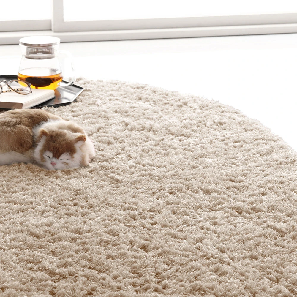 洗えて清潔、ふかふかの踏み心地が心地よいシャギーラグ ベージュ 円形(直径185cm)