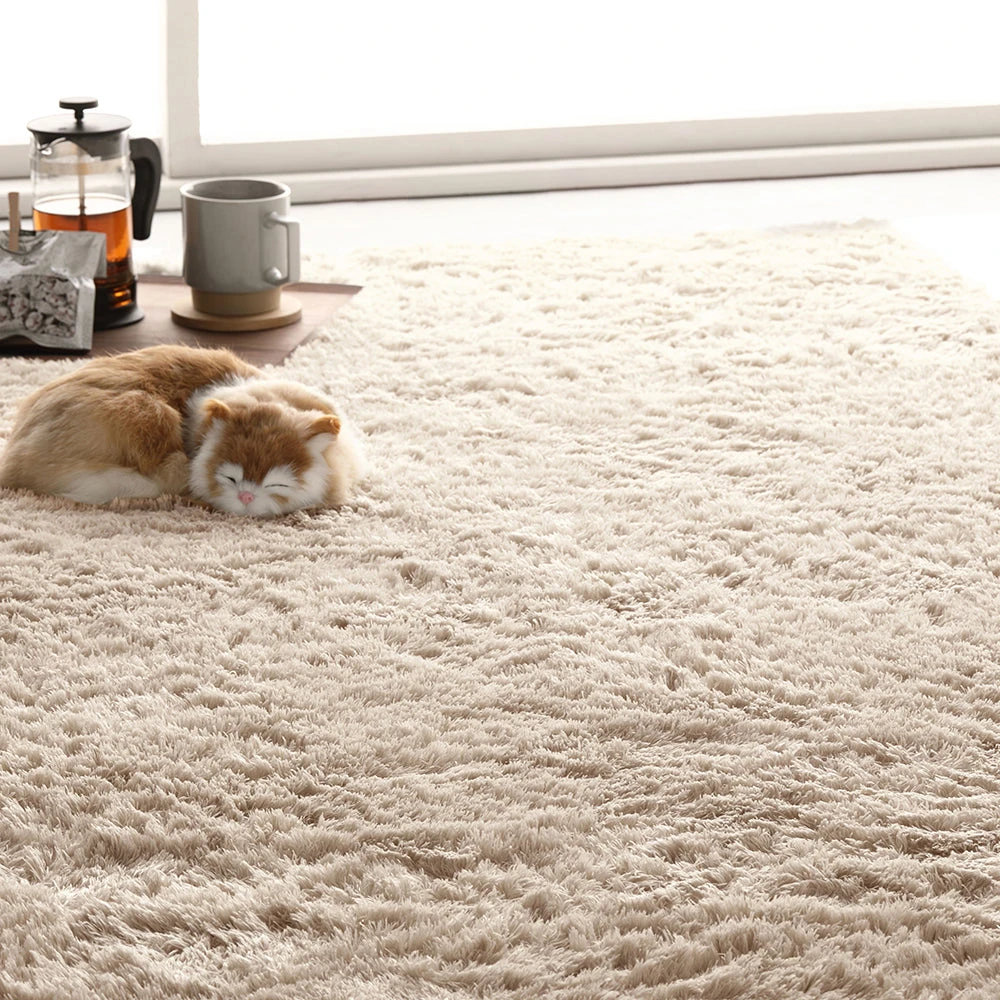 洗えて清潔、ふかふかの踏み心地が心地よいシャギーラグ ベージュ 長方形(185×240cm)