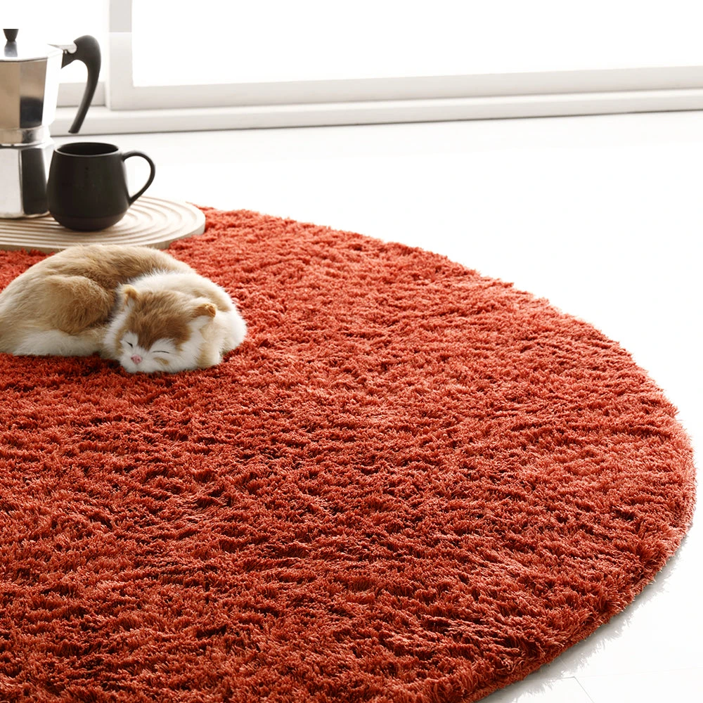 洗えて清潔。やわらかな毛足でくつろげるシャギーラグ オレンジ 円形(約R185×185cm)