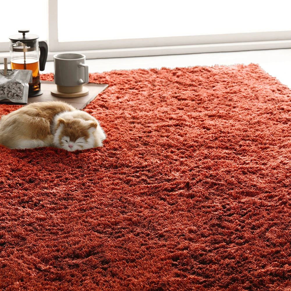 洗えて清潔。やわらかな毛足でくつろげるシャギーラグ オレンジ 約130×185cm(1.5畳)