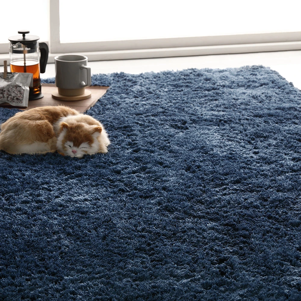 洗えて清潔。やわらかな毛足でくつろげるシャギーラグ ネイビー 約200×300cm(4畳)