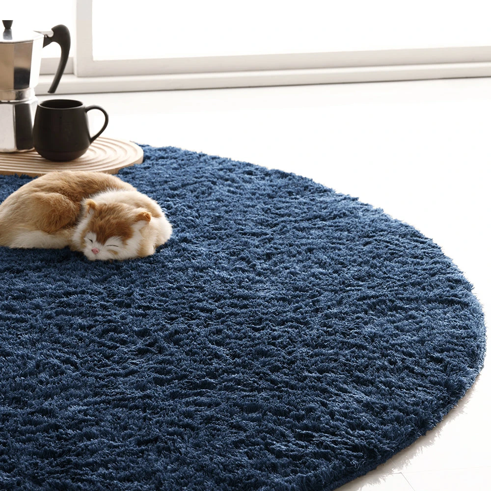 洗えて清潔。やわらかな毛足でくつろげるシャギーラグ ネイビー 円形(約R185×185cm)
