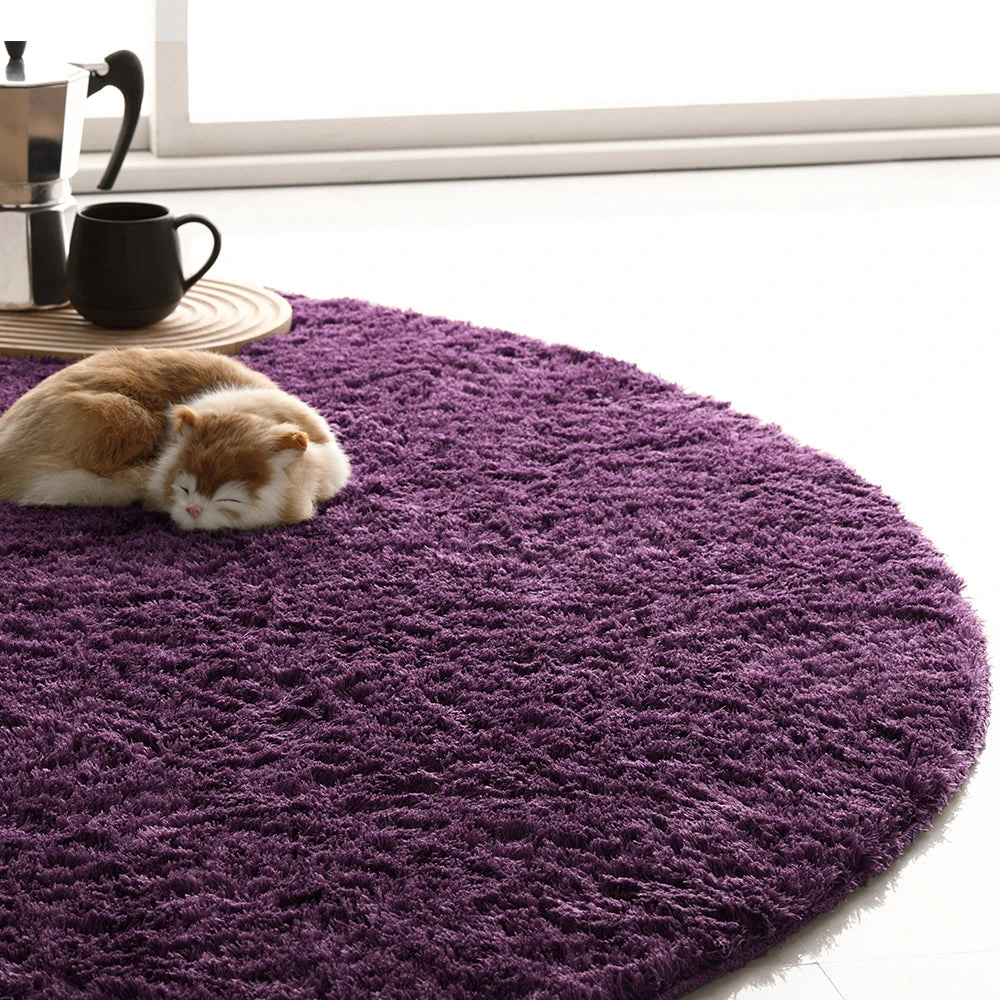 洗えて清潔。やわらかな毛足でくつろげるシャギーラグ パープル 円形(約R185×185cm)