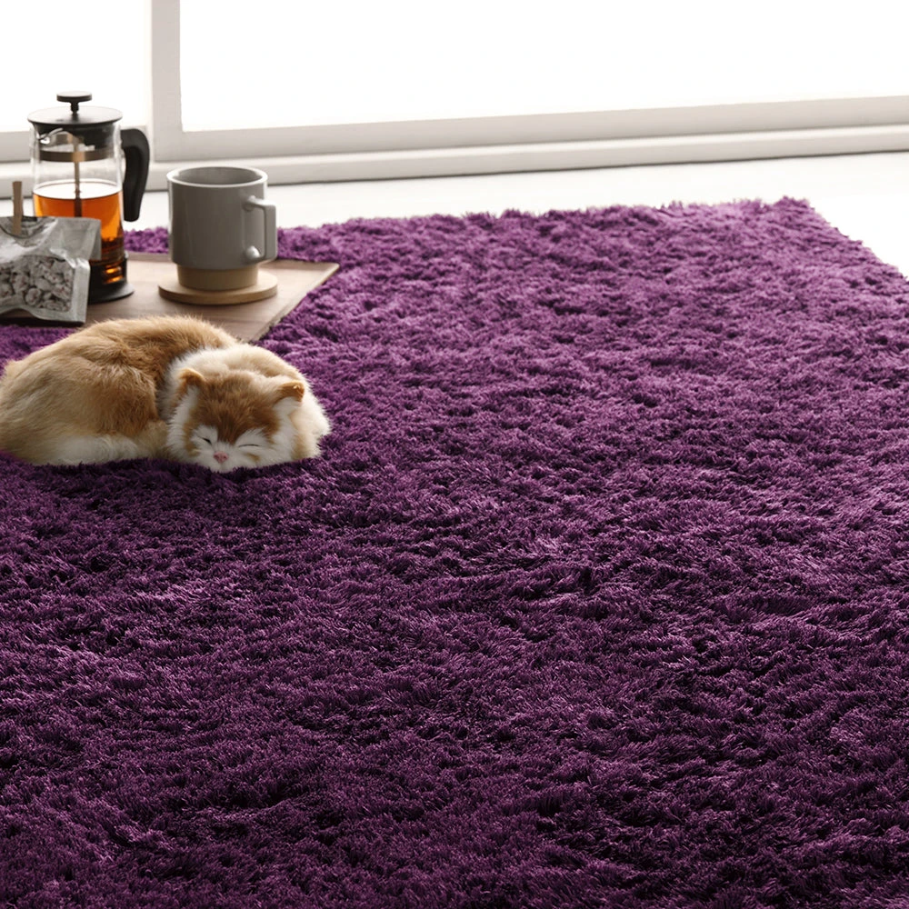 洗えて清潔。やわらかな毛足でくつろげるシャギーラグ パープル 約130×185cm(1.5畳)