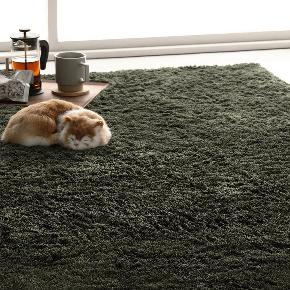 洗えて清潔。やわらかな毛足でくつろげるシャギーラグ グリーン 約200×300cm(4畳)