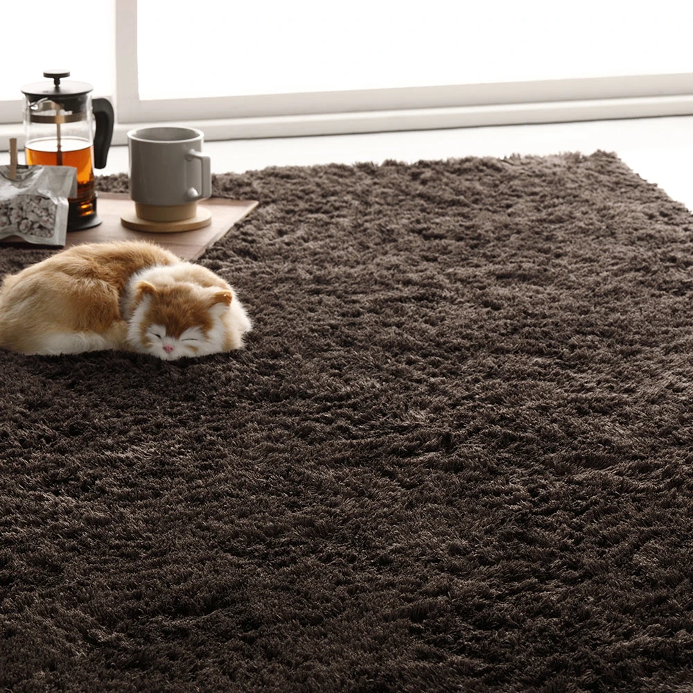 洗えて清潔。やわらかな毛足でくつろげるシャギーラグ ブラウン 約200×300cm(4畳)