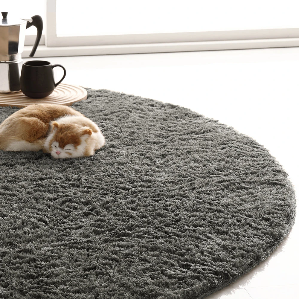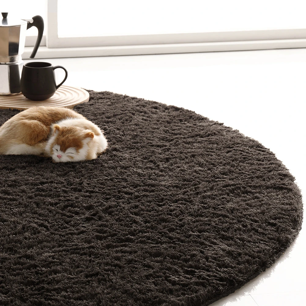 洗えて清潔。やわらかな毛足でくつろげるシャギーラグ グレー 円形(約R185×185cm)