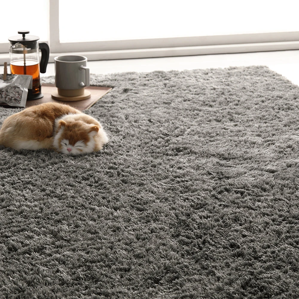 洗えて清潔。やわらかな毛足でくつろげるシャギーラグ グレー 約130×185cm(1.5畳)