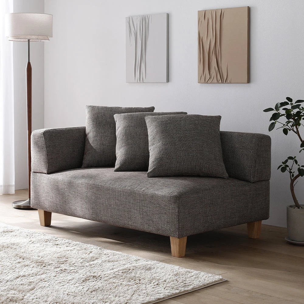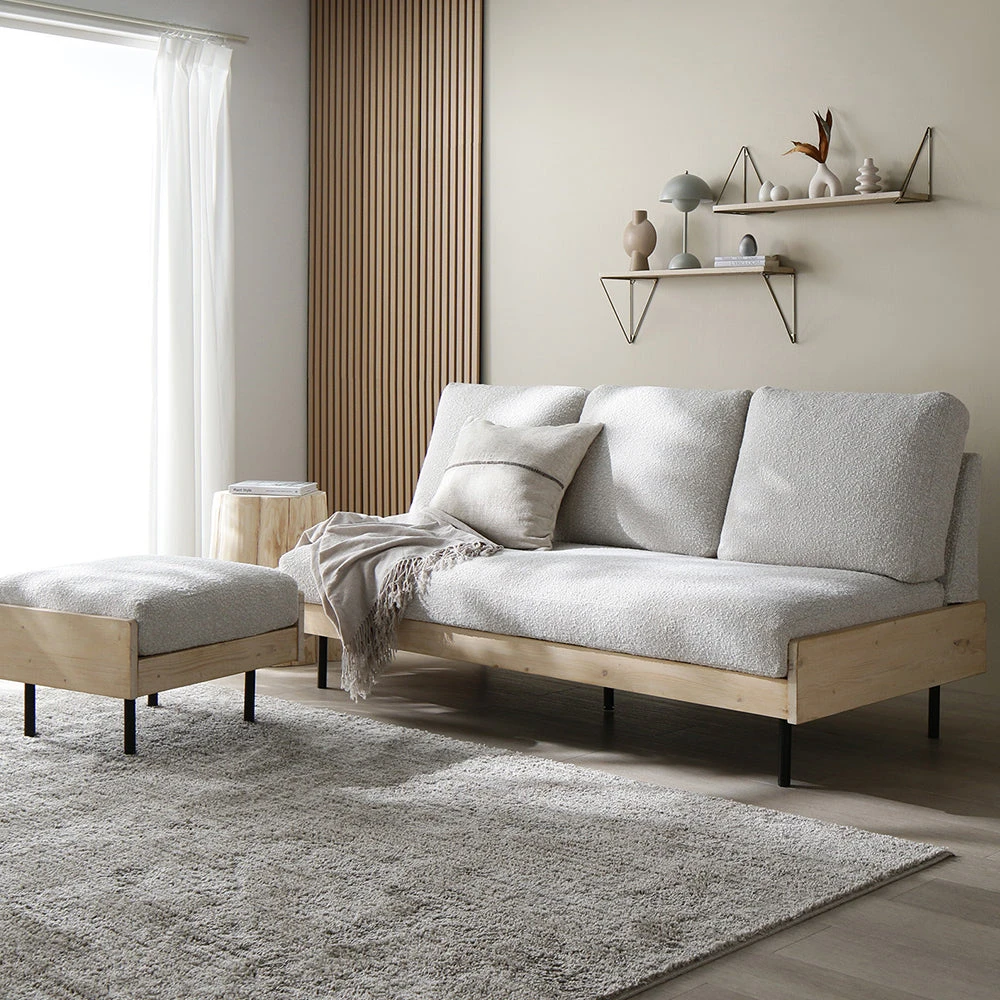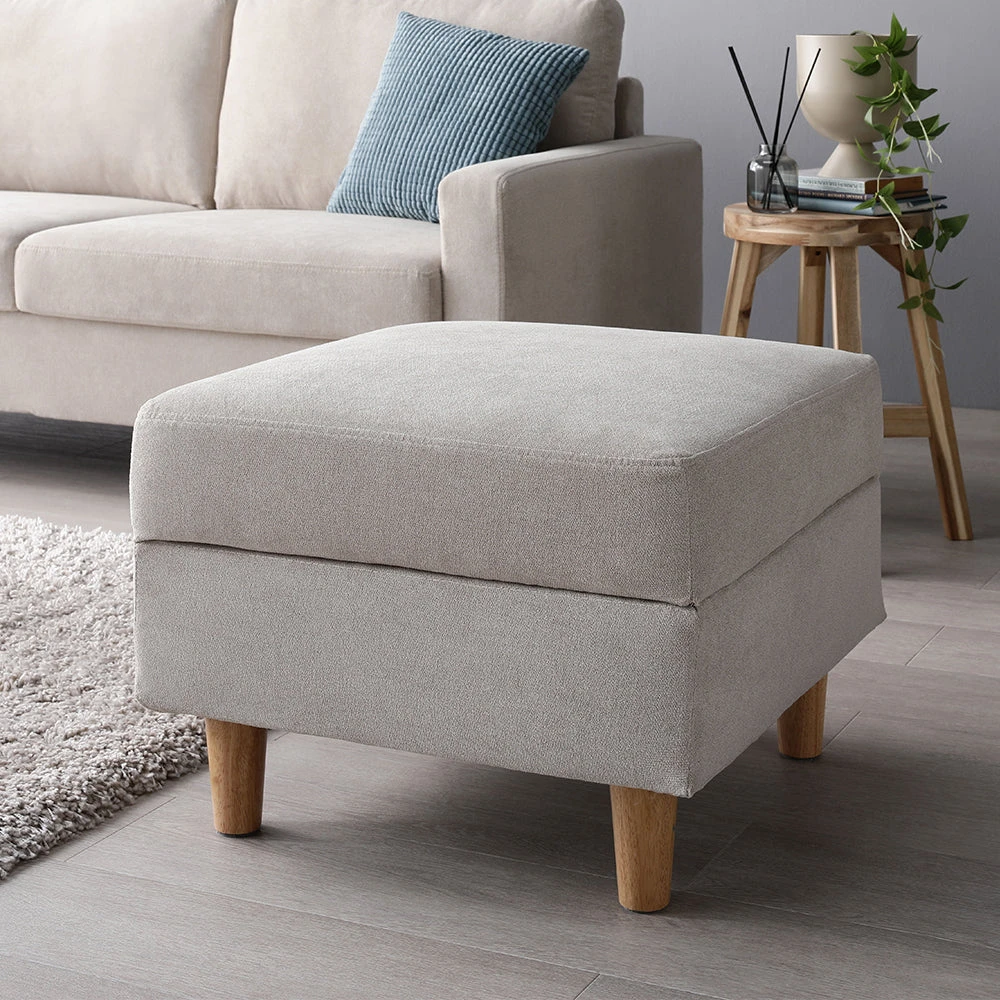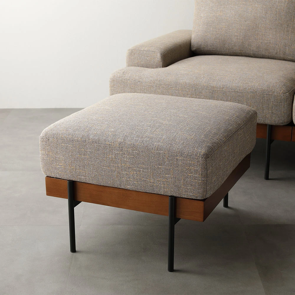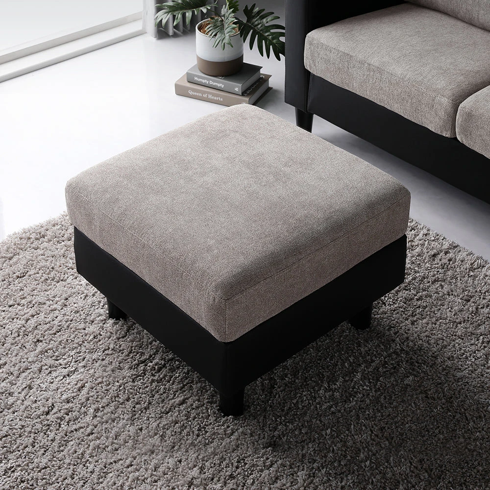 1部屋の形に合わせて形を変え暮らしに寄り添うファブリックソファ ベージュ×ブラック オットマン単品