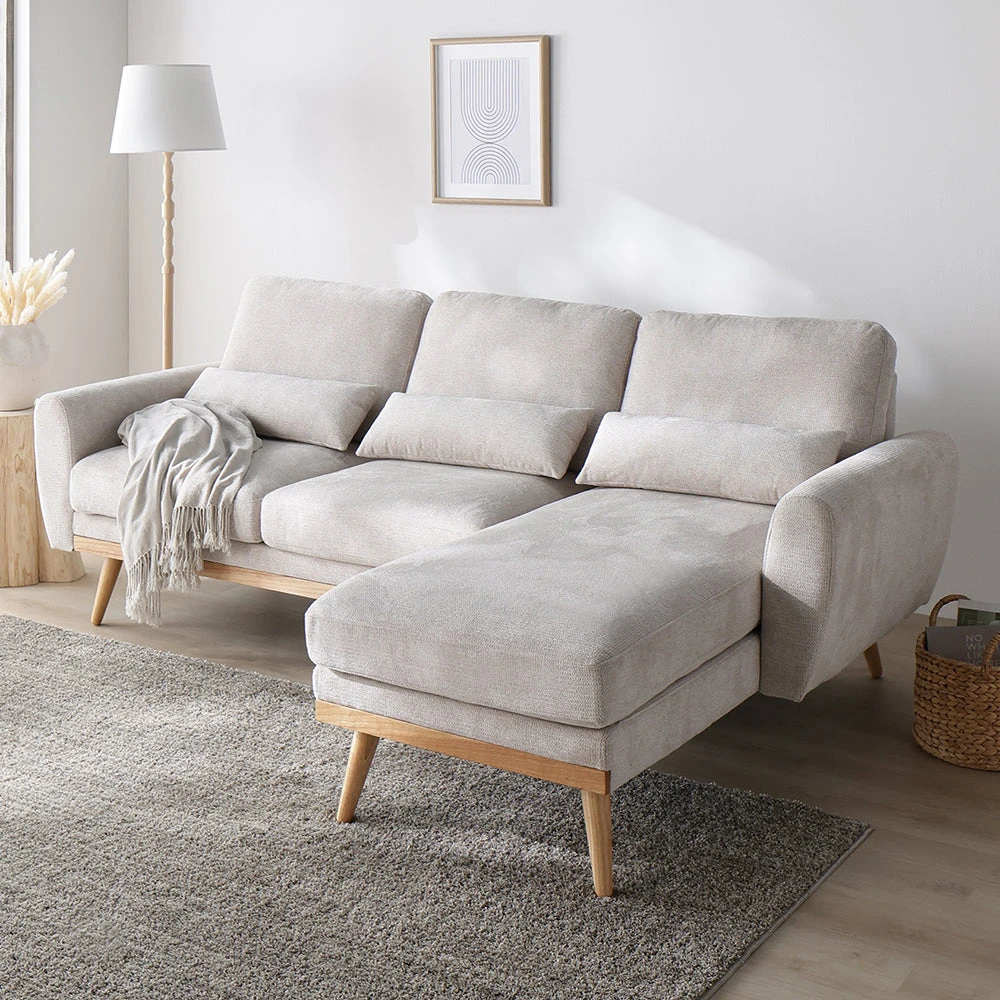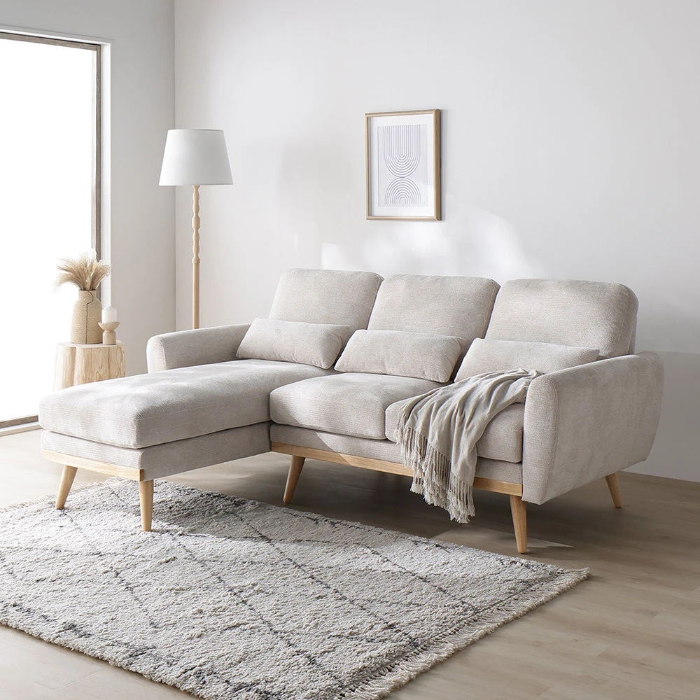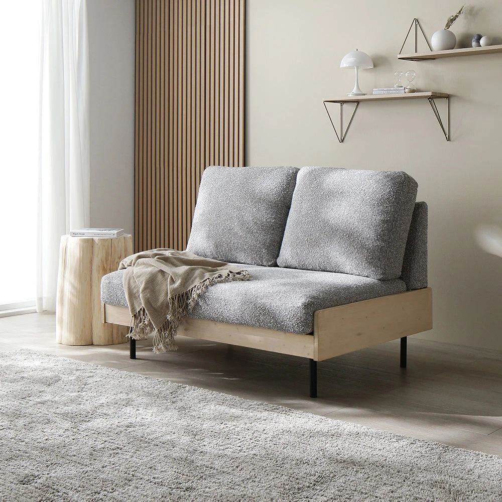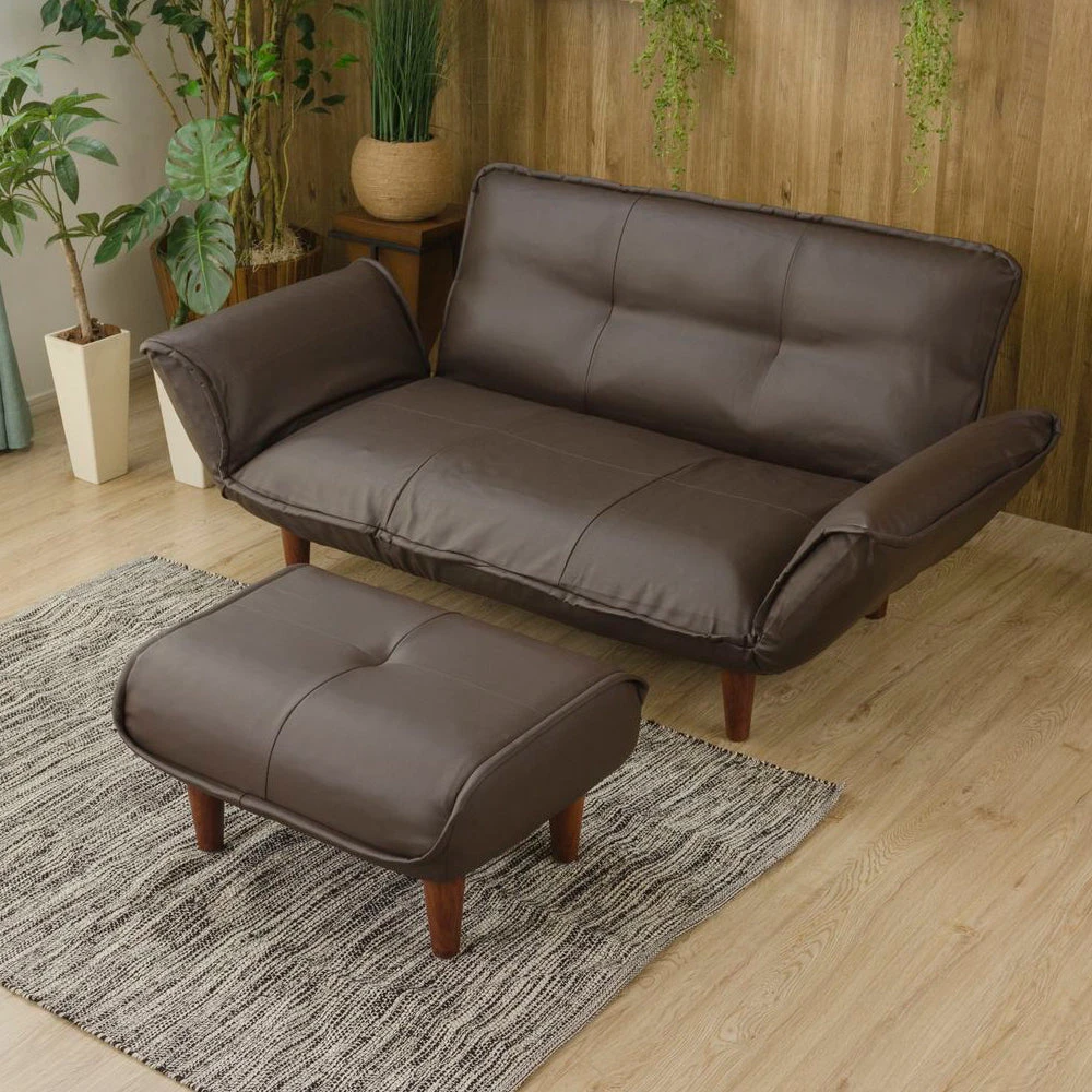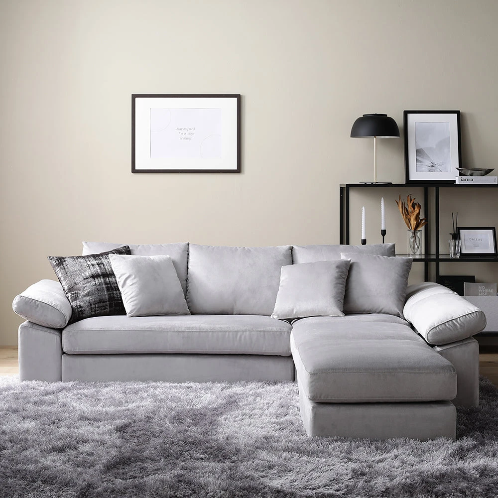 1部屋の形に合わせて形を変え暮らしに寄り添うファブリックソファ ベージュ×ブラック オットマン単品