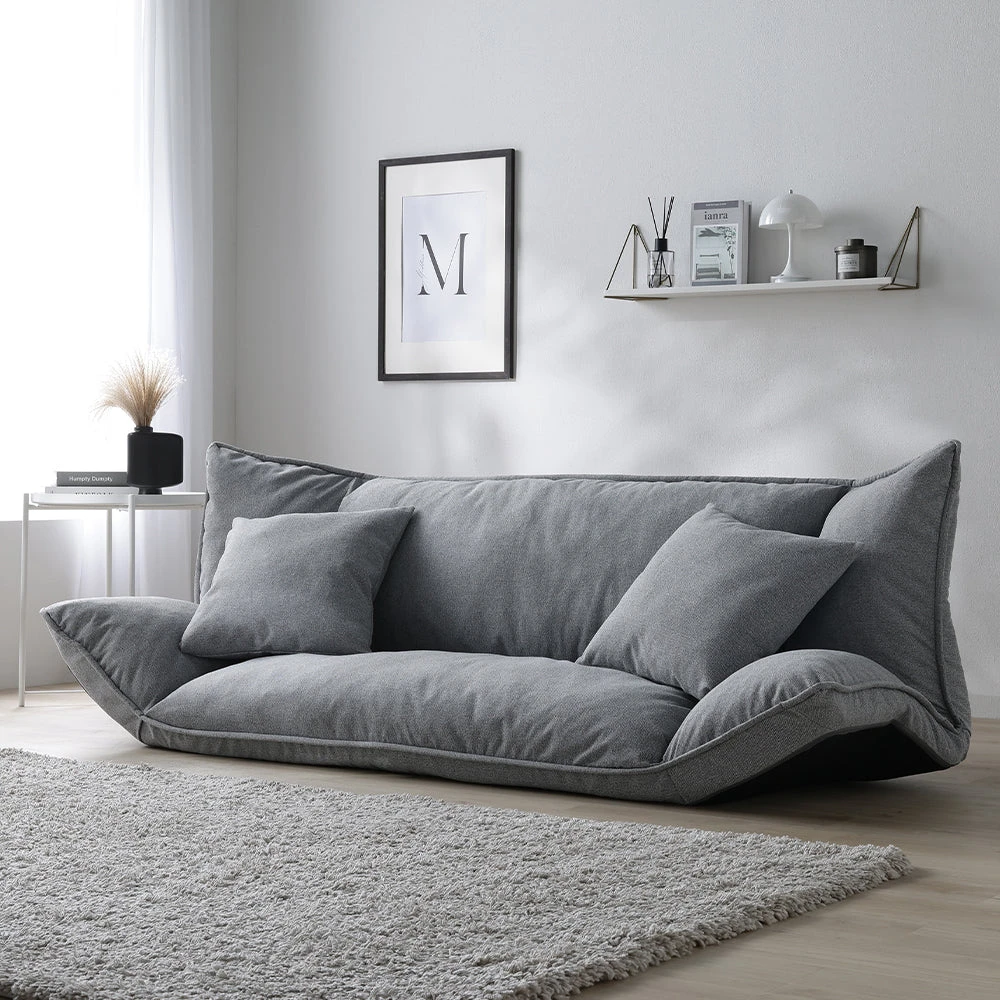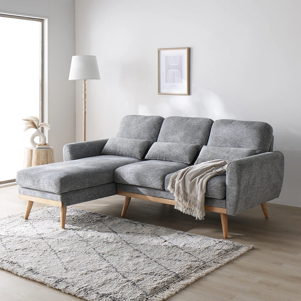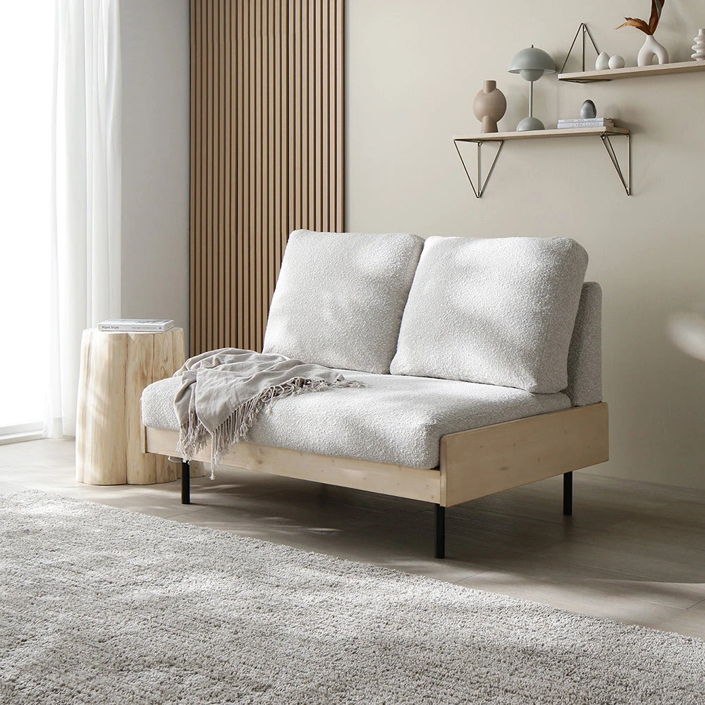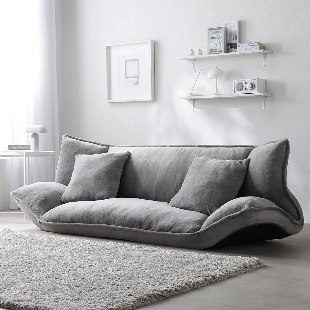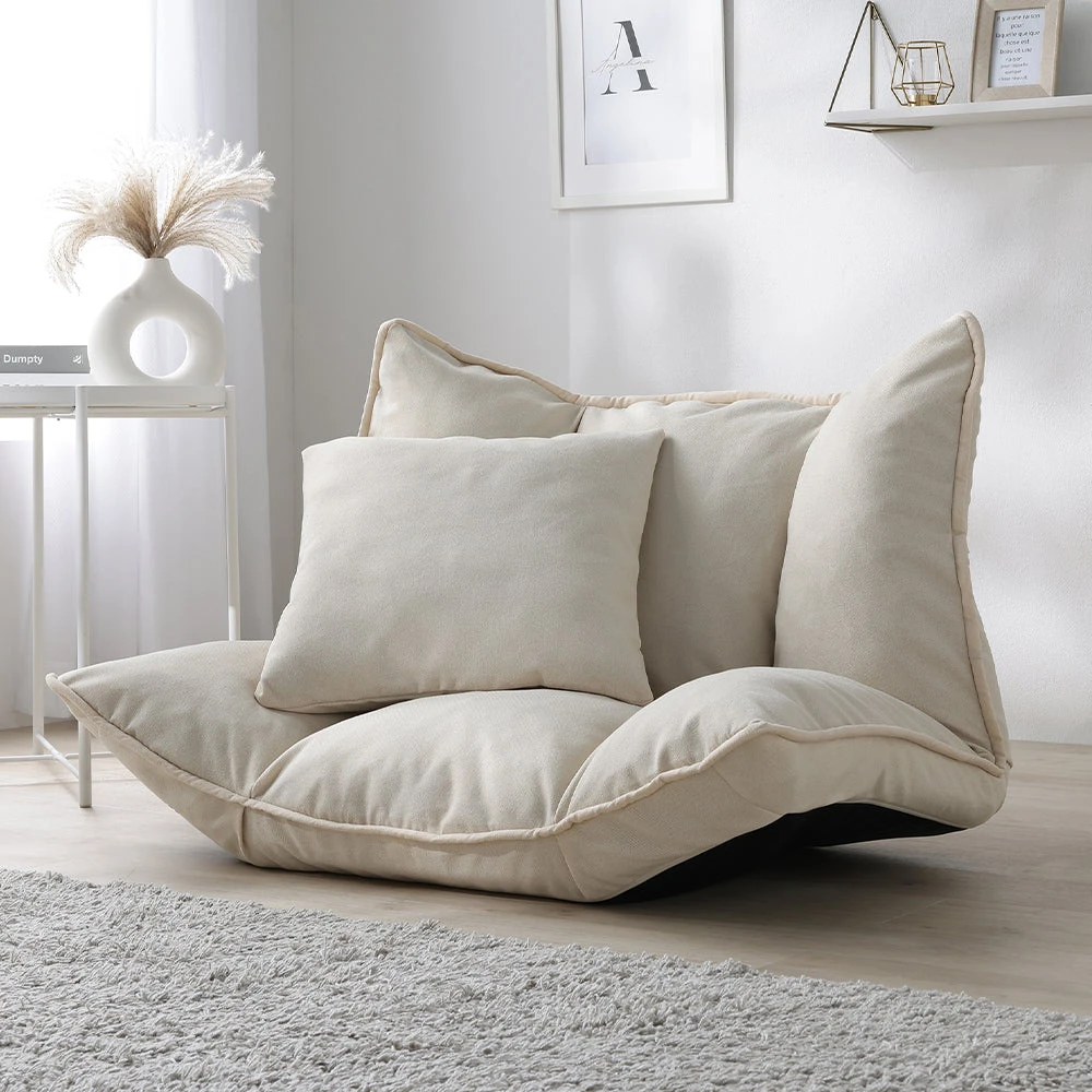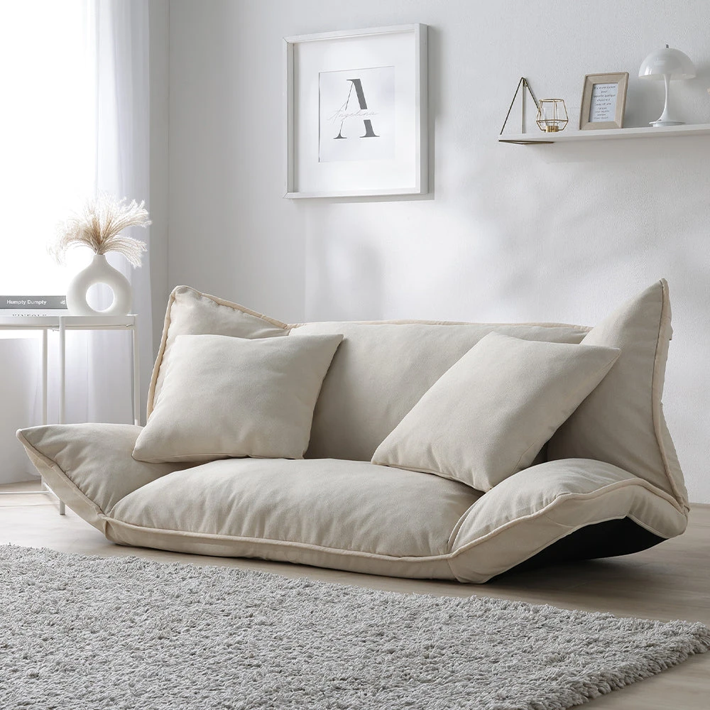 1部屋の形に合わせて形を変え暮らしに寄り添うファブリックソファ ベージュ×ブラック オットマン単品