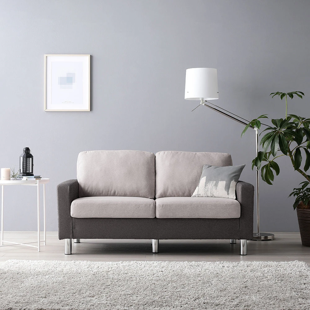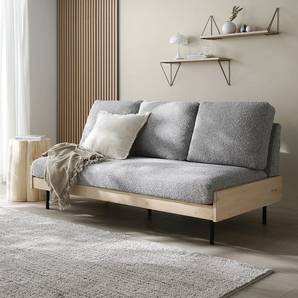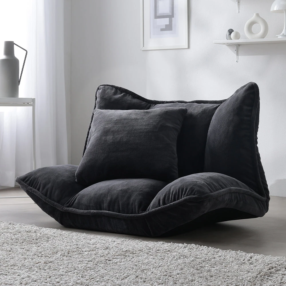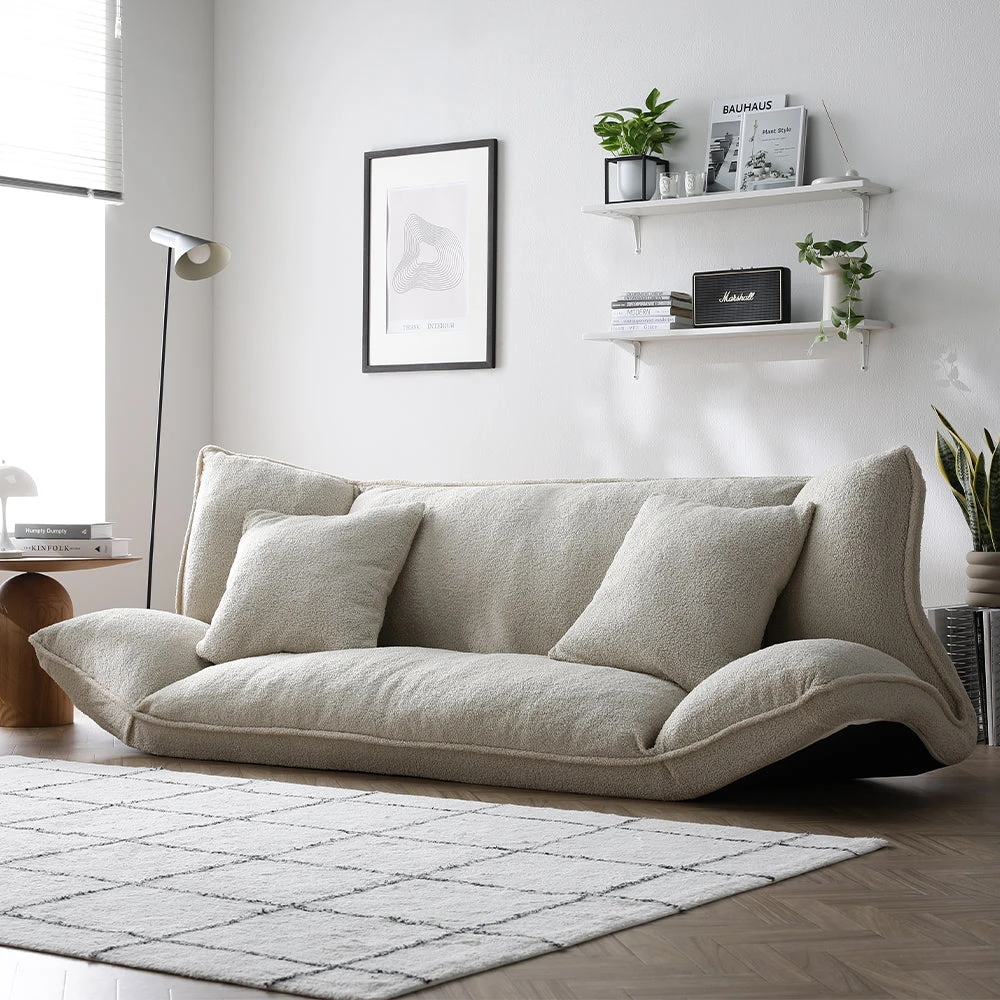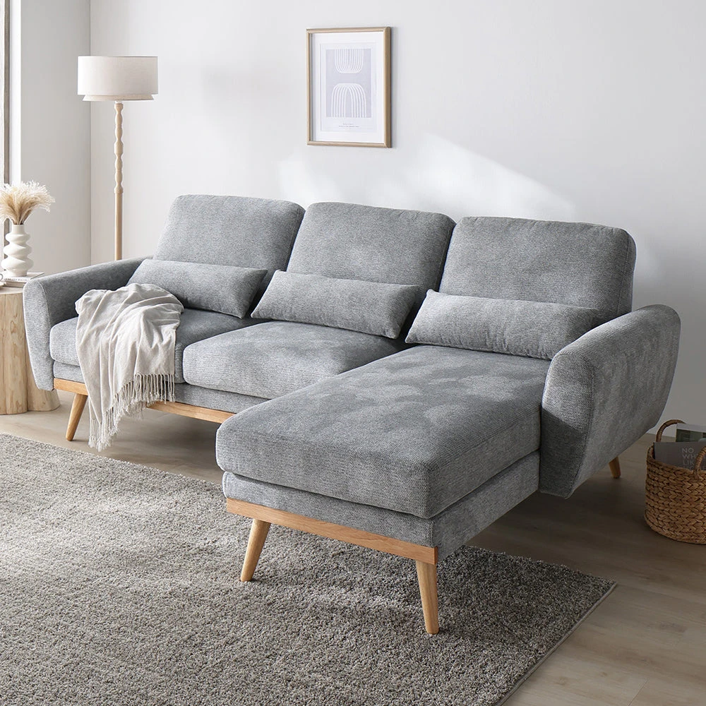 1部屋の形に合わせて形を変え暮らしに寄り添うファブリックソファ ベージュ×ブラック オットマン単品